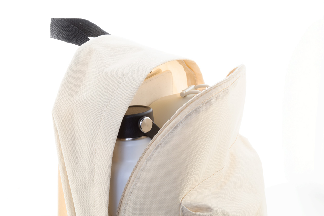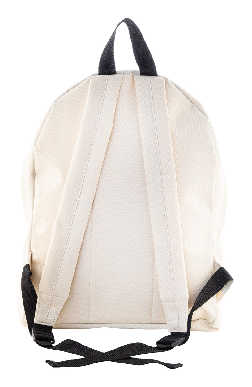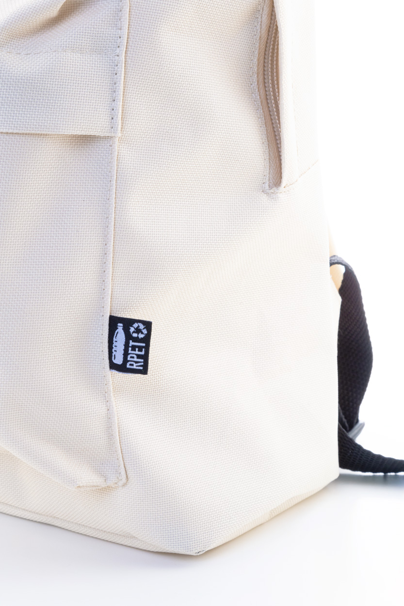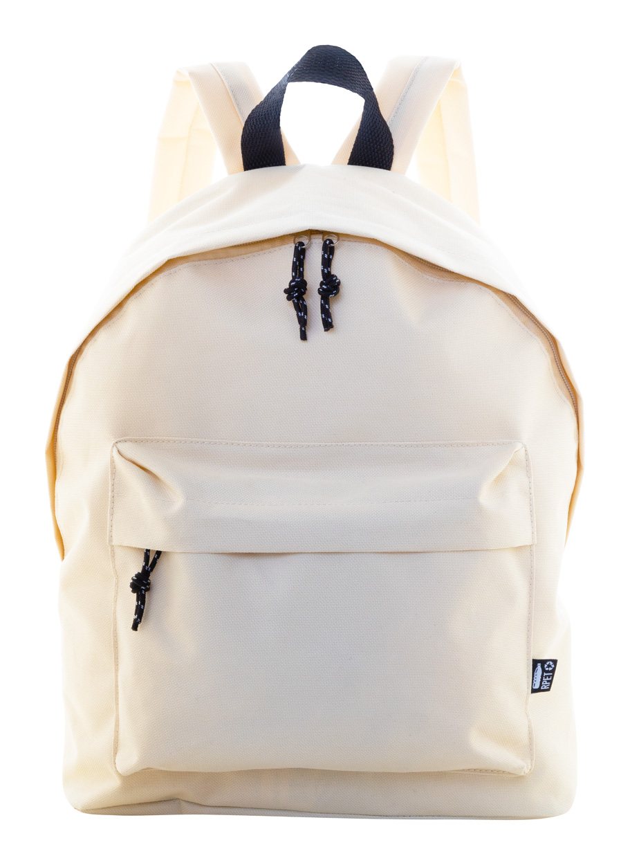 RPET batoh s hlavním prostorem na zip, přední kapsou na zip, polstrovanými zády a ramenními popruhy. Polyester 600D RPET, s výrazným štítkem RPET.