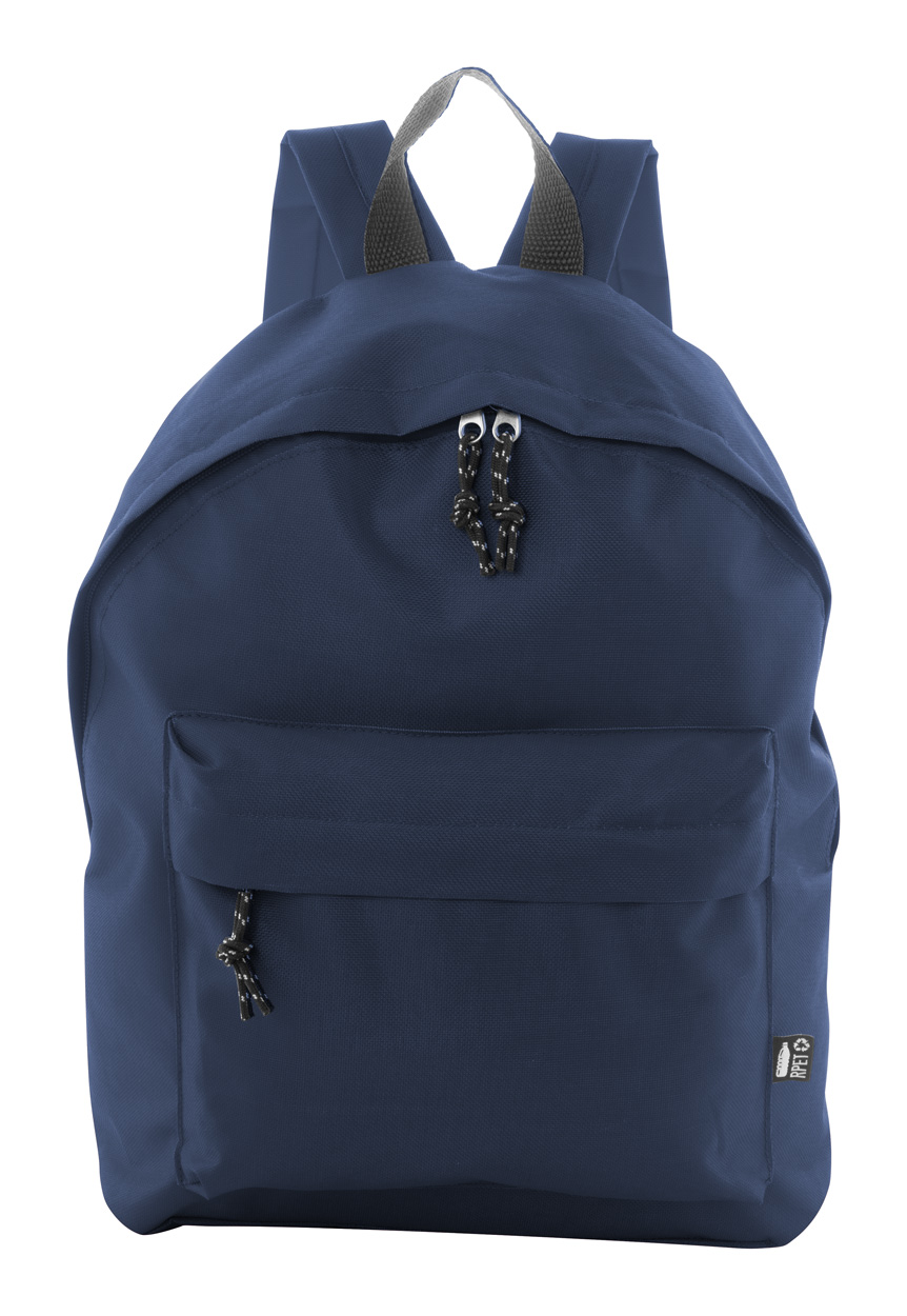 RPET batoh s hlavním prostorem na zip, přední kapsou na zip, polstrovanými zády a ramenními popruhy. Polyester 600D RPET, s výrazným štítkem RPET.