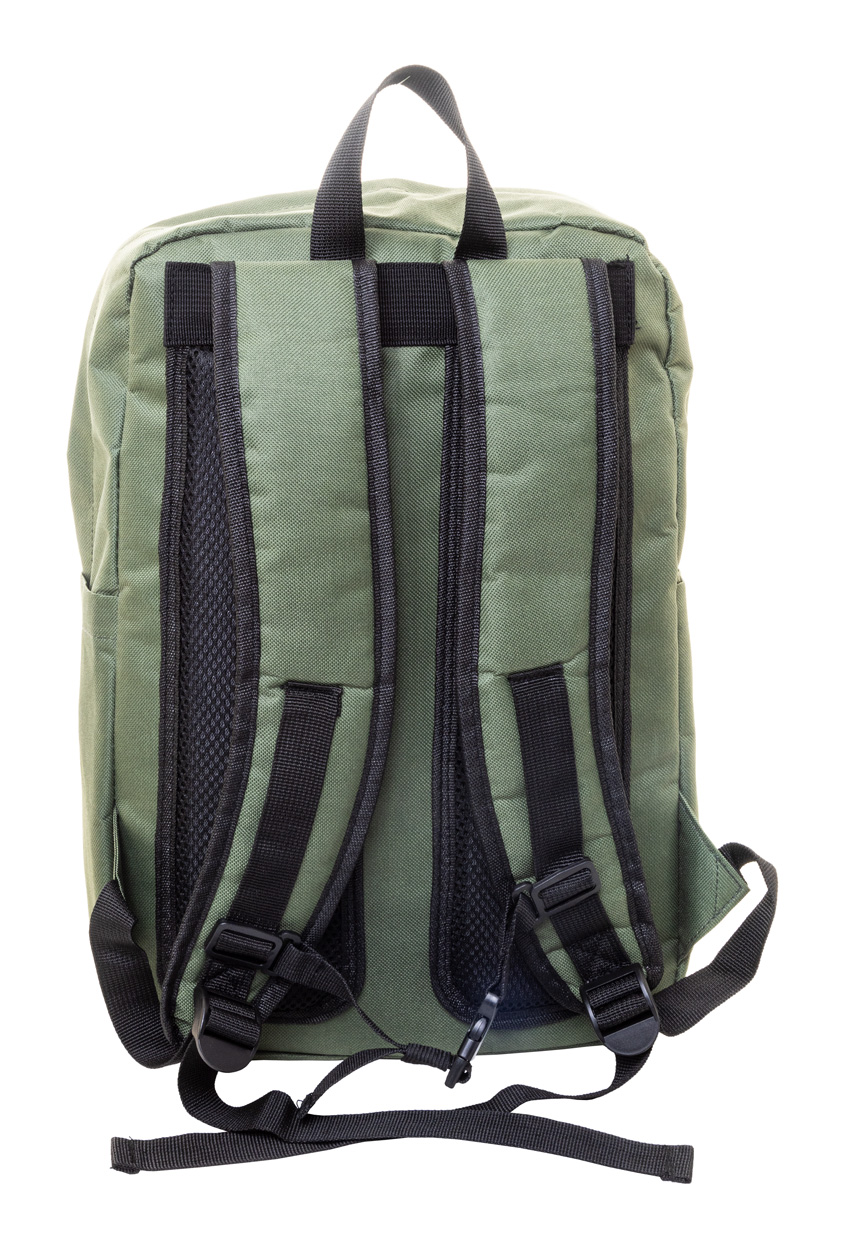 Batoh RPET s hlavním oddílem na zip, 2 předními kapsami na zip, bočními kapsami a polstrovanou přihrádkou na notebook (15") a tablet (10") S polstrovanými zády a ramenními popruhy. Polyester 600D RPET, s výrazným štítkem RPET.
