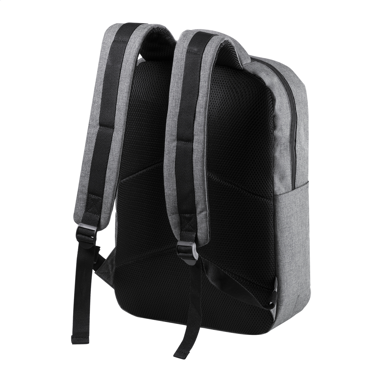 Batoh s přihrádkami na zip, polstrovaným prostorem pro notebook (15 ") a tablet (10"), polstrovanými zady a ramenními popruhy. Se zabudovaným USB připojením pro power banky. 600D RPET polyester, s etiketou s označením RPET.