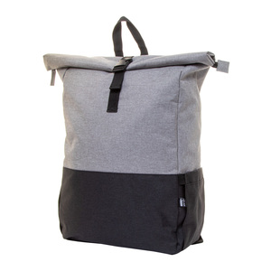 Dvoubarevný rolovací batoh z RPET se zapínáním na přezku, hlavní přihrádka na zip, polstrovaná přihrádka na notebook (15") a tablet (10"), boční kapsy, polstrovaná záda a ramenní popruhy. 300D RPET polyester s výrazným štítkem RPET.