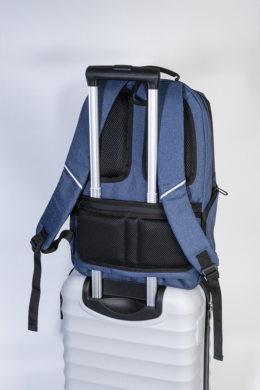 Batoh z RPET s přihrádkami na zip, 2 předními kapsami na zip, bočními kapsami na zip a polstrovanou přihrádkou na notebook (15"). S polstrovanými zády a ramenními popruhy, kapsou s ochranou proti krádeži a popruhem na kufr. Z polyesteru 300D RPET s výrazným štítkem RPET.