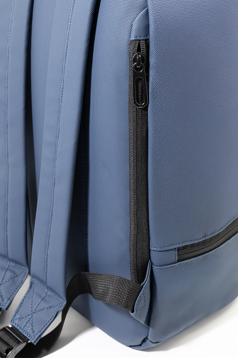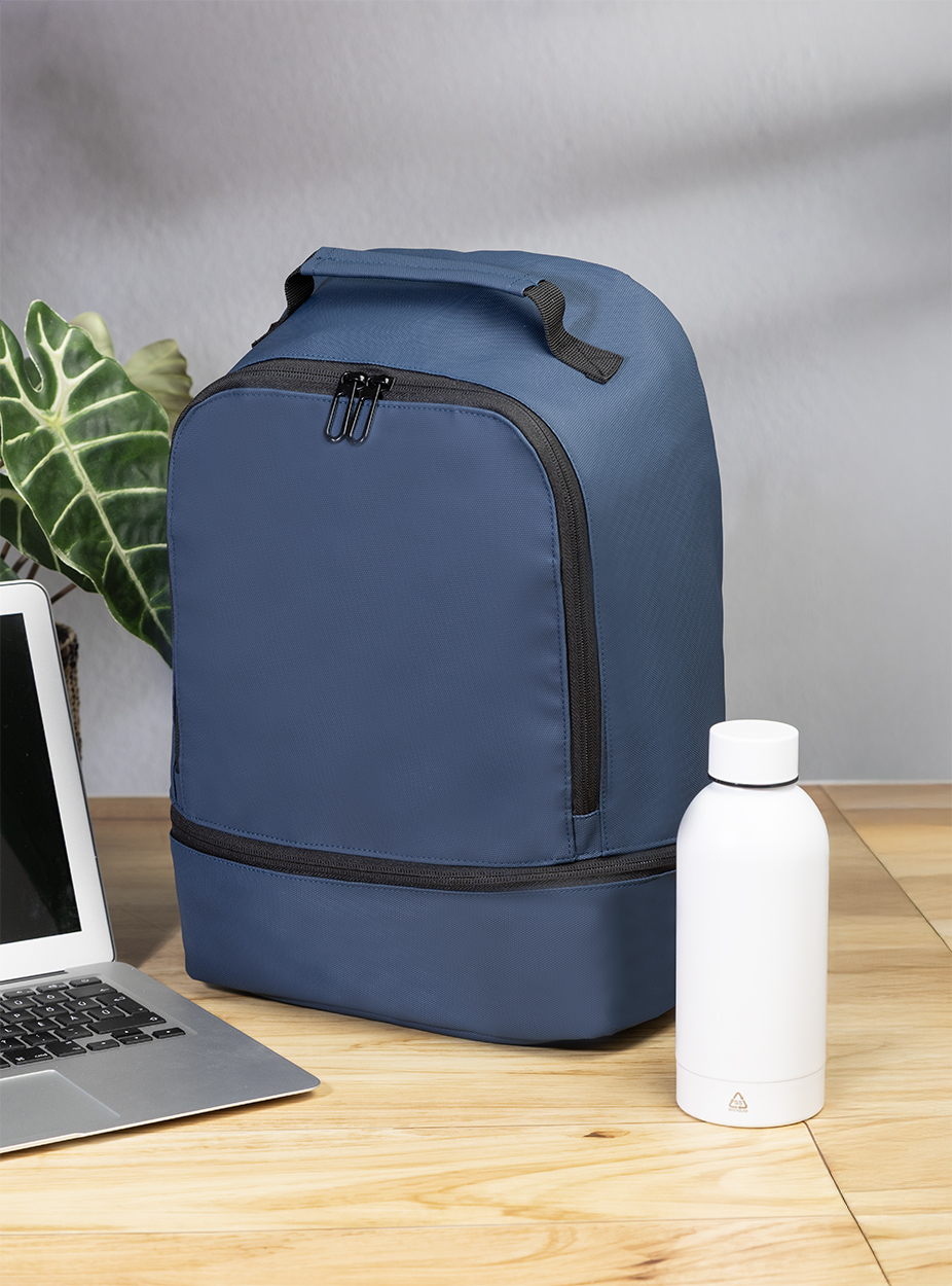 Voděodolný batoh z RPET s hlavní přihrádkou na zip, polstrovanou přihrádkou na notebook (13"), spodní přihrádkou na zip a skrytou boční kapsou. S polstrovanými zády a ramenními popruhy. Polyester 600D RPET s PU zátěrem a výrazným štítkem RPET.