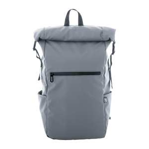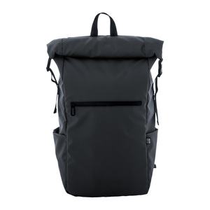 Vodotěsný rolovací batoh z RPET se zapínáním na přezku a suchý zip, polstrovaná přihrádka na notebook (16") a tablet (10"), přední kapsa na zip, boční kapsy, polstrovaná záda a ramenní popruhy. Polyester 600D RPET potažený PU, s výrazným štítkem RPET.