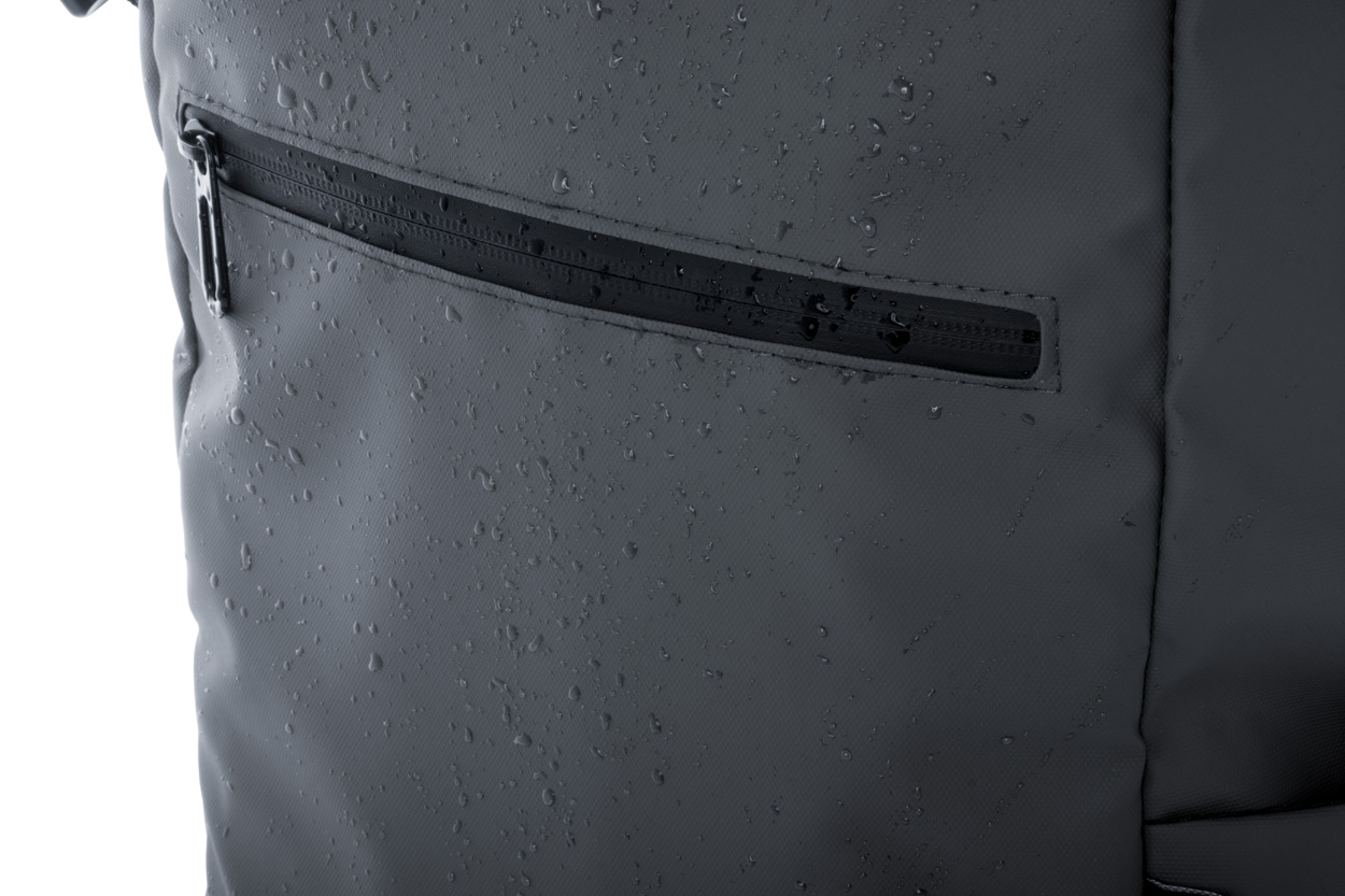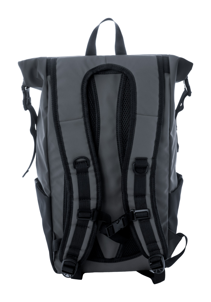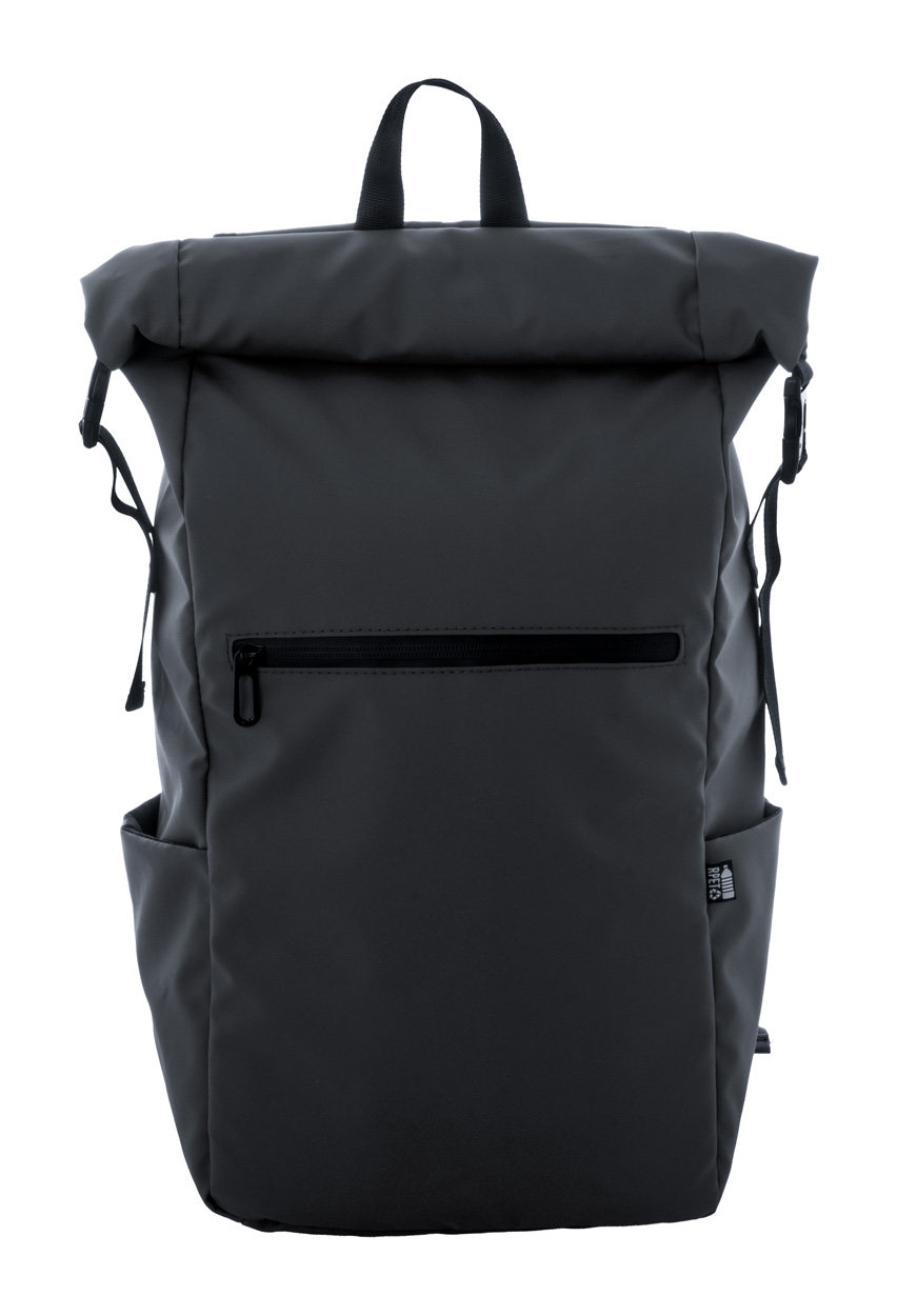 Vodotěsný rolovací batoh z RPET se zapínáním na přezku a suchý zip, polstrovaná přihrádka na notebook (16") a tablet (10"), přední kapsa na zip, boční kapsy, polstrovaná záda a ramenní popruhy. Polyester 600D RPET potažený PU, s výrazným štítkem RPET.