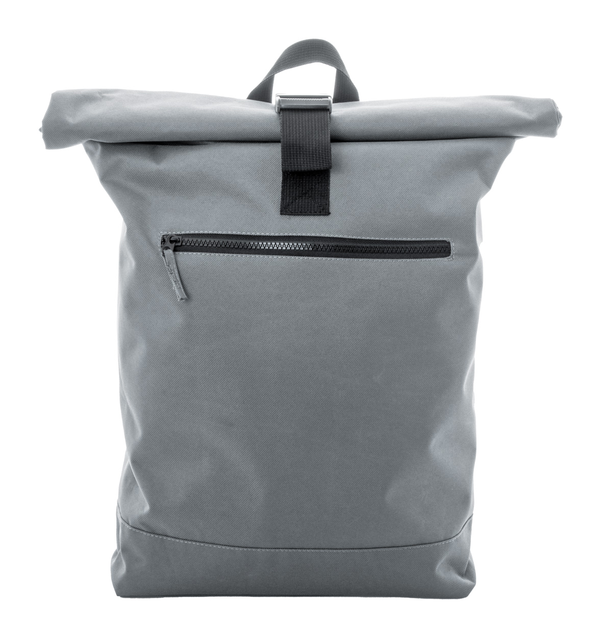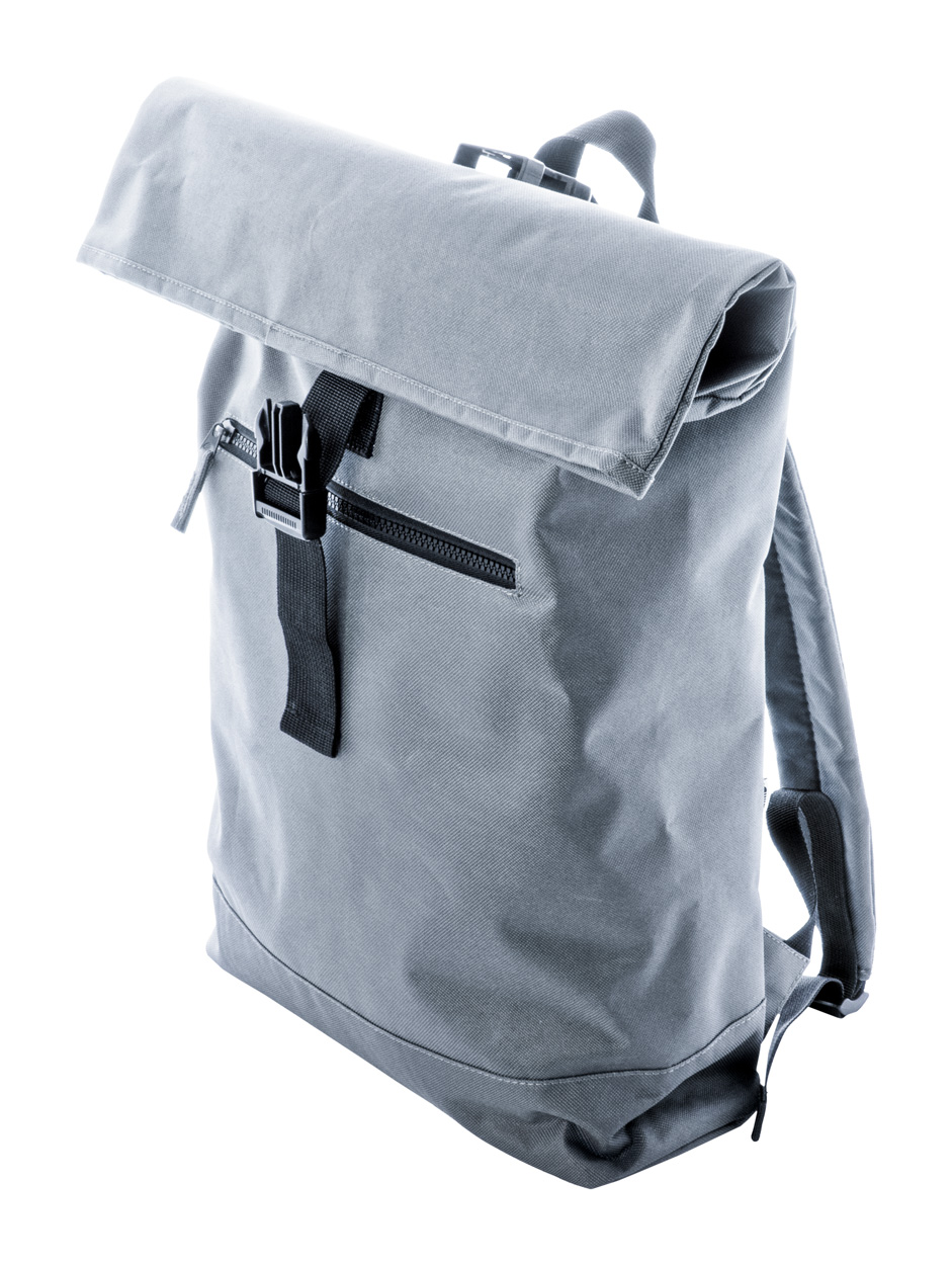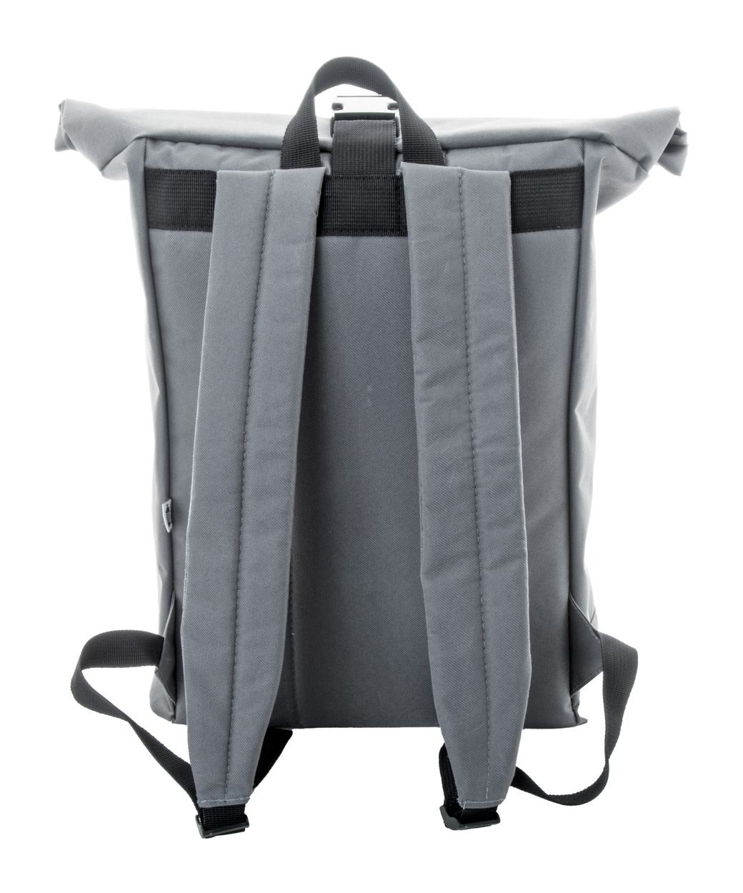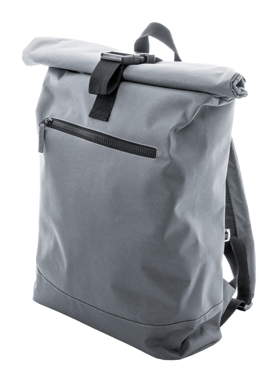 Rolovací batoh RPET se zapínáním na přezku, přední kapsa na zip, polstrovaná přihrádka na notebook (15"), polstrovaná záda a ramenní popruhy. Polyester 600D RPET s výrazným štítkem RPET.
