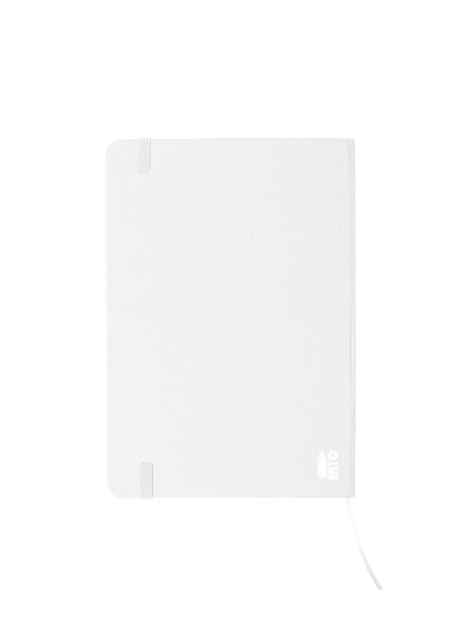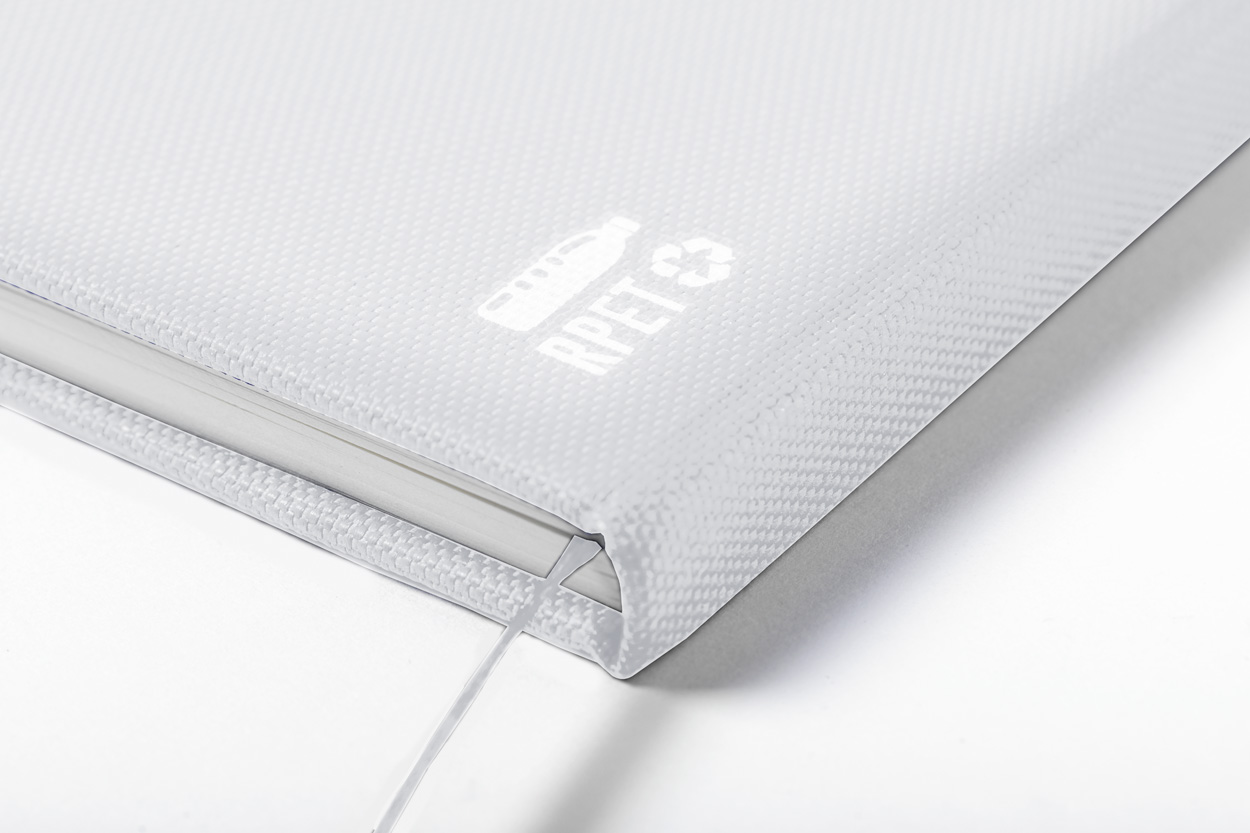 RPET blok A5 potažený polyesterem s 80 linkovanými listy, záložkou a gumičkou.