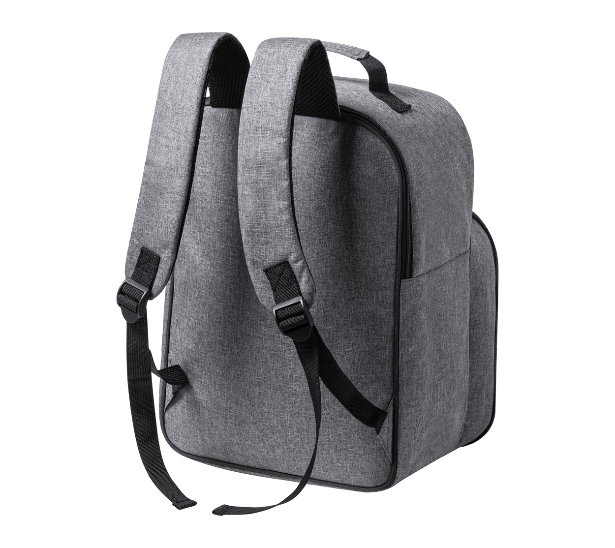 Chladící batoh na piknik RPET s polstrovanými popruhy a zády, chladicí přihrádka s polstrováním PEVA. Obsahuje 2 sklenice, 2 nože, 2 lžíce, 2 vidličky, 2 talíře a 2 ubrousky. Polyester 600D RPET s výrazným štítkem RPET.