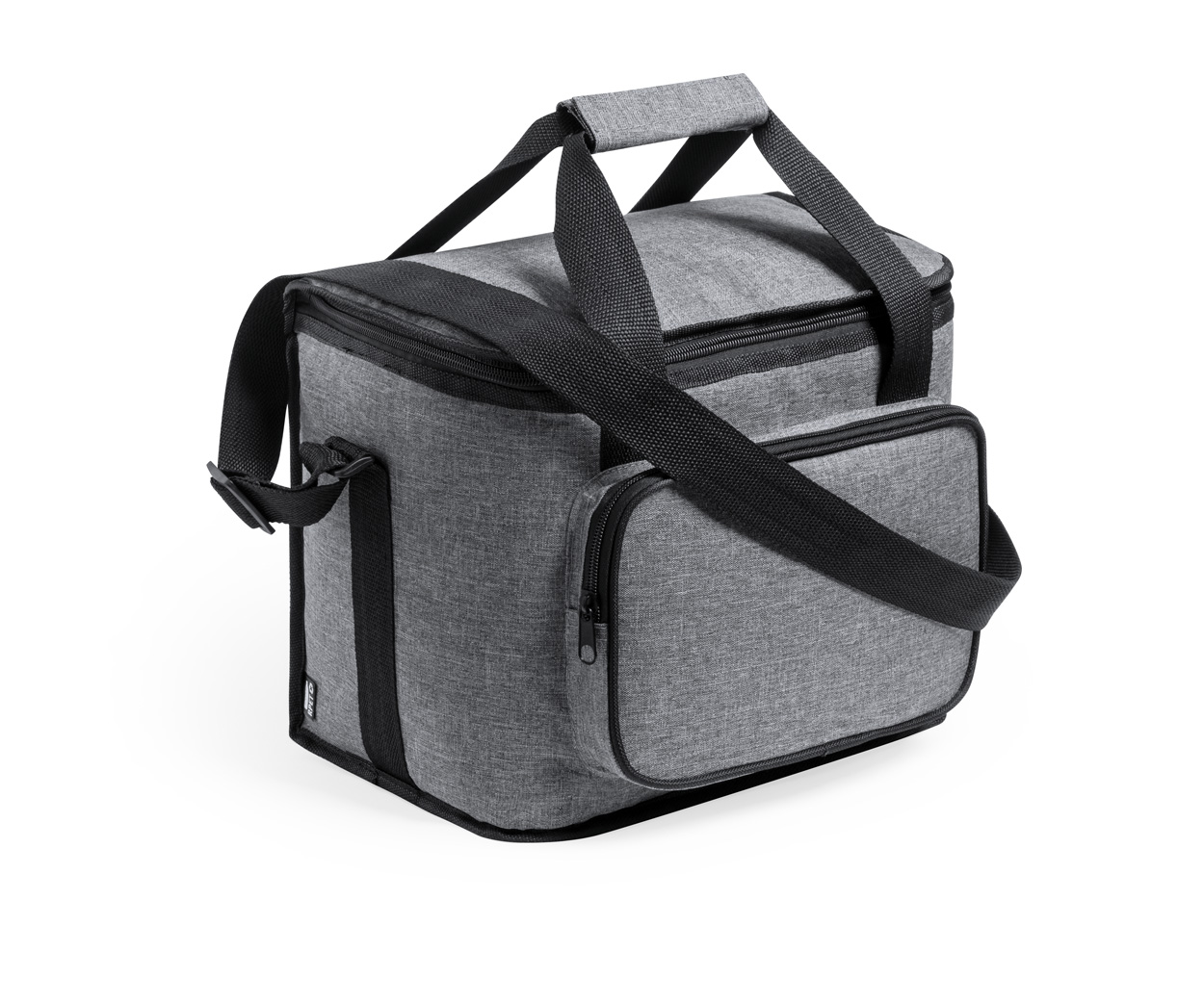 Chladicí taška RPET s polstrováním PEVA, přihrádkami na zip, ucha se suchým zipem a nastavitelným ramenním popruhem. S výrazným štítkem RPET. 600D RPET polyester.