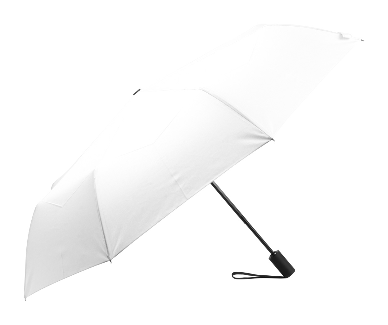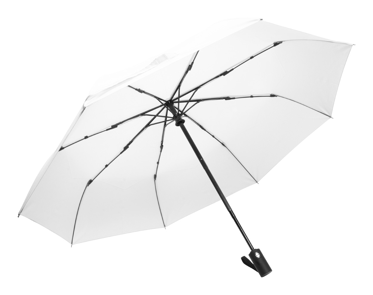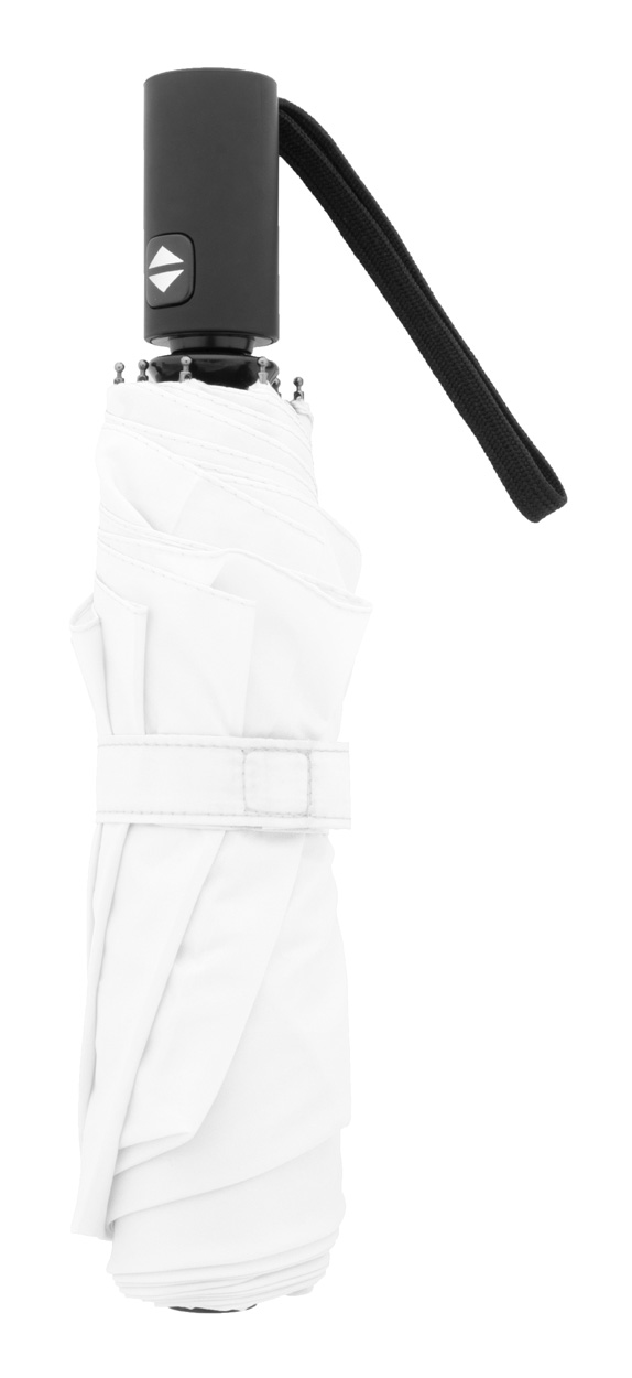 Plně automatický (otevřít/zavřít), větruodolný skládací deštník s 8 panely v pouzdře ve stejné barvě. S kovovým rámem, sklolaminátovými žebry a pogumovanou rukojetí. Pongee 190T RPET. S výrazným štítkem RPET.