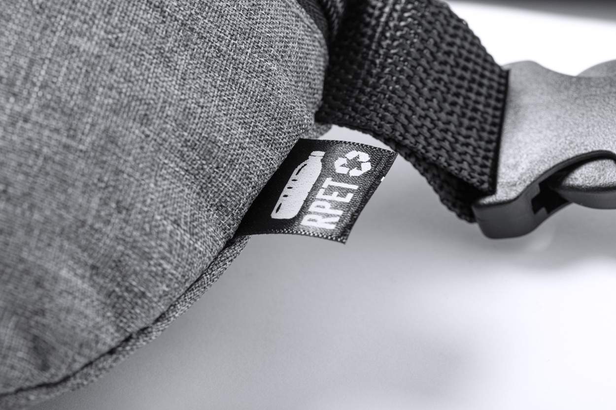 Ledvinka RPET s přihrádkou na zip a nastavitelným popruhem. S výrazným štítkem RPET. 600D RPET polyester.