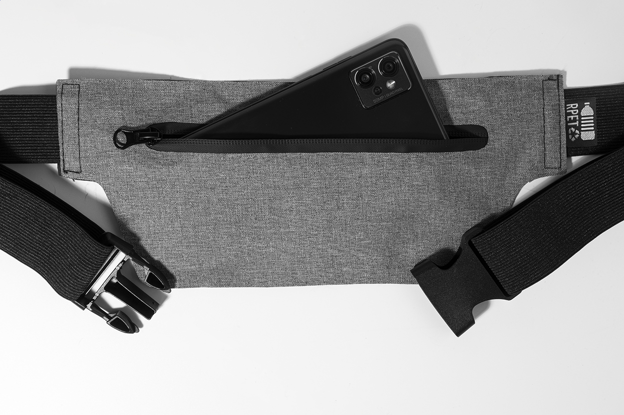 Úzká ledvinka z RPET s přihrádkou na zip a nastavitelným elastickým popruhem. 300D RPET polyester s charakteristickým štítkem RPET.