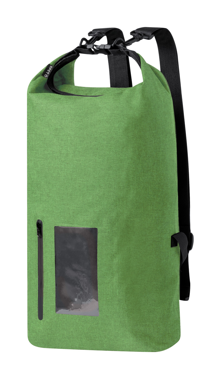 Vodotěsný batoh z polyesteru 300D RPET s kapsou na zip na dotykovou obrazovku a nastavitelnými popruhy. Kapacita: 25l.
