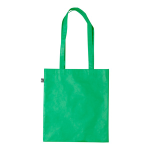 Polaminovaná recyklovaná RPET nákupní taška s dlouhými uchy, 105 g/m², s etiketou s označením RPET.