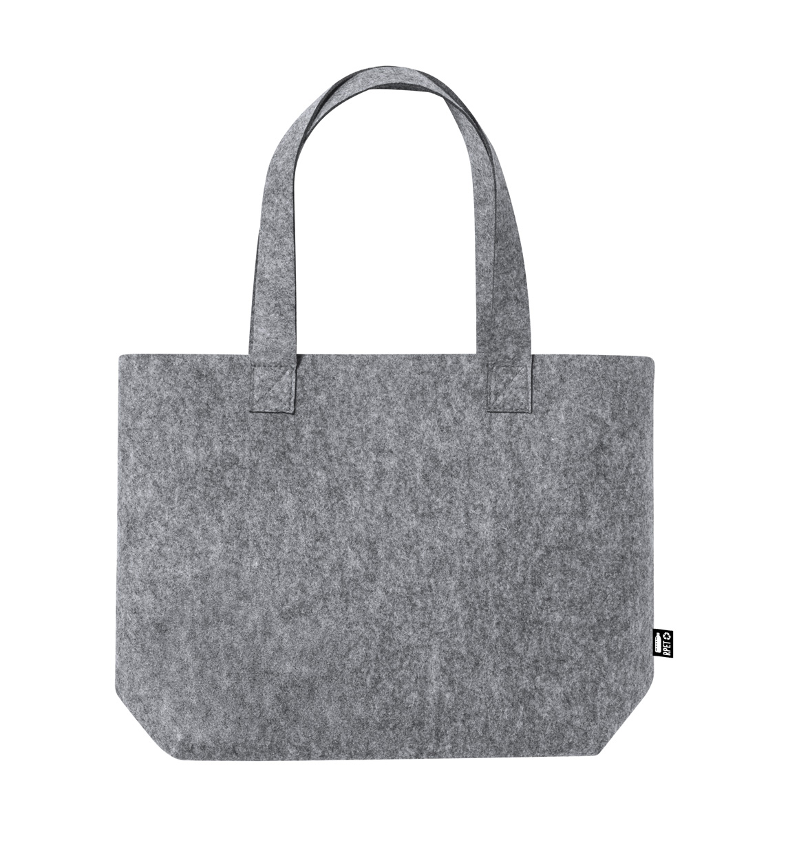 Nákupní taška z RPET filcu s dlouhými uchy a rozšířeným dnem. S výrazným štítkem RPET.