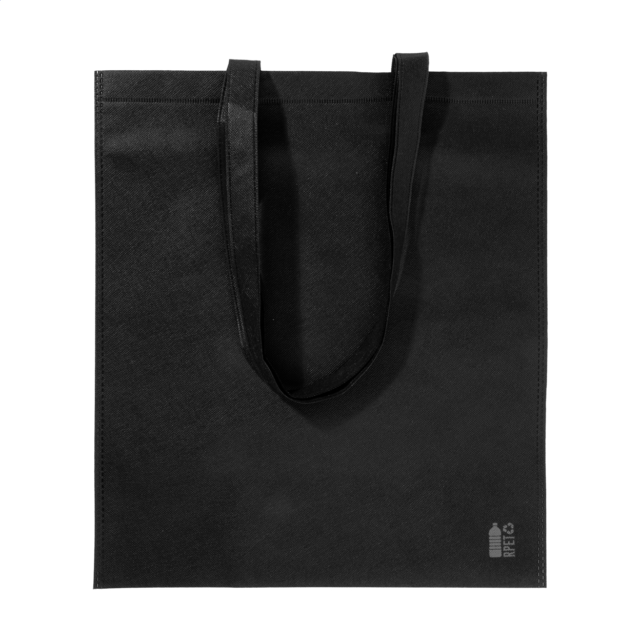 Nákupní taška z netkané textilie RPET s dlouhými uchy, 70 g/m². S výrazným znakem RPET.