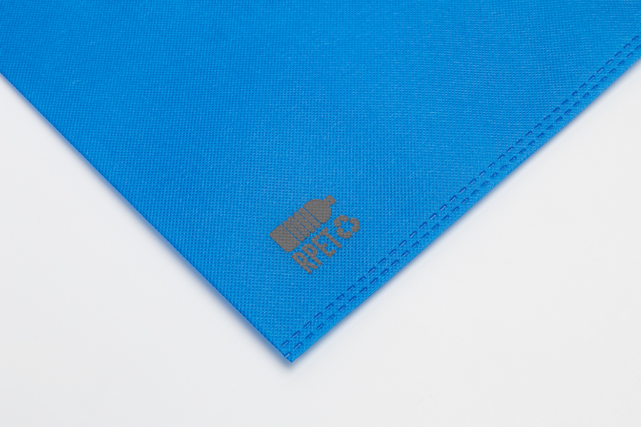 Nákupní taška z netkané textilie RPET s vysekávanými uchy, 70 g/m². S výrazným znakem RPET.