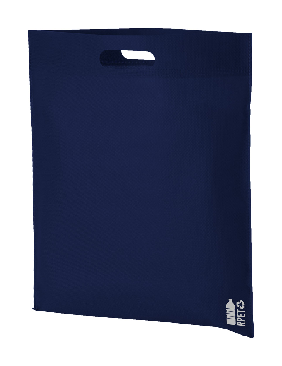 Nákupní taška z netkané textilie RPET s vysekávanými uchy, 70 g/m². S výrazným znakem RPET.