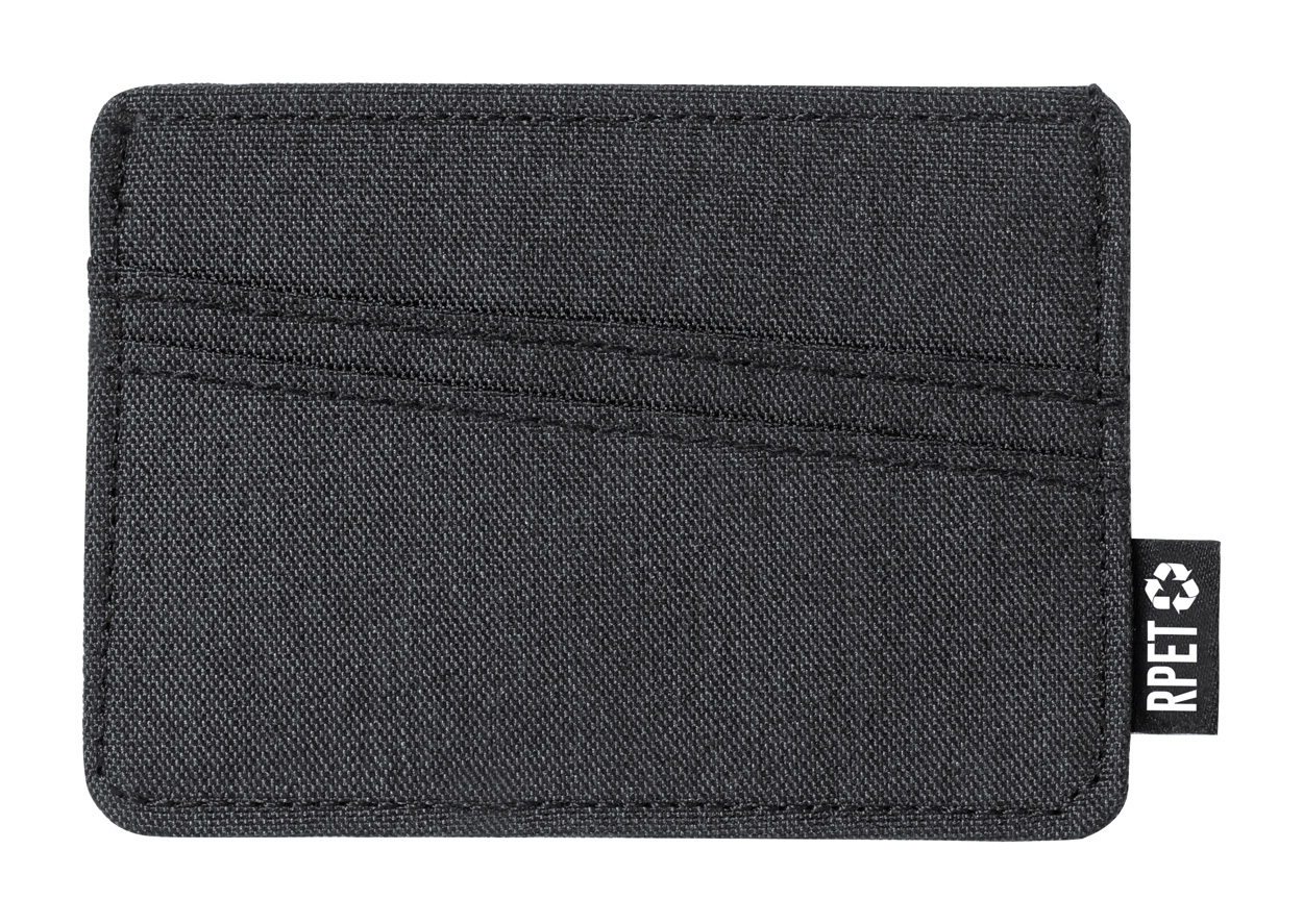 Polyesterový RPET obal na kreditní karty se 3 přihrádkami na karty. S výrazným štítkem RPET.
