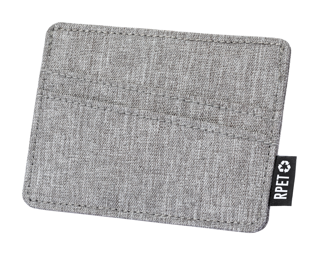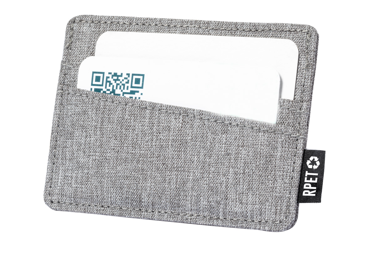 Polyesterový RPET obal na kreditní karty se 3 přihrádkami na karty. S výrazným štítkem RPET.