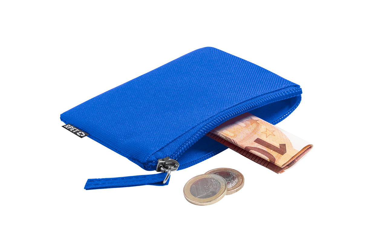 Peněženka na zip ze 600D RPET polyesteru, s etiketou s označením RPET.