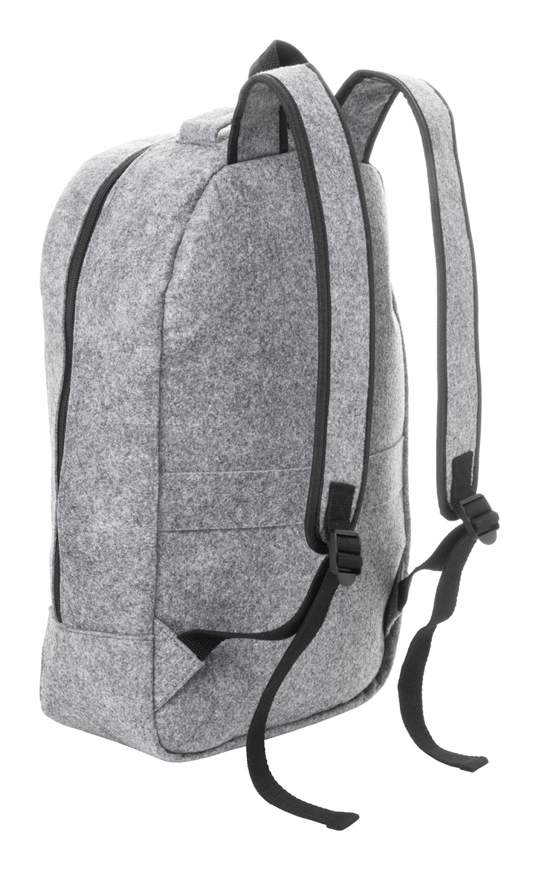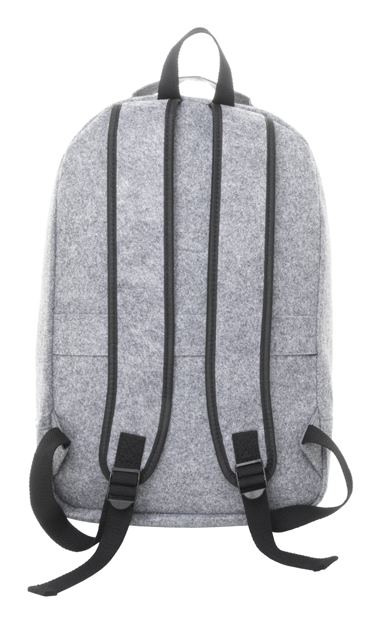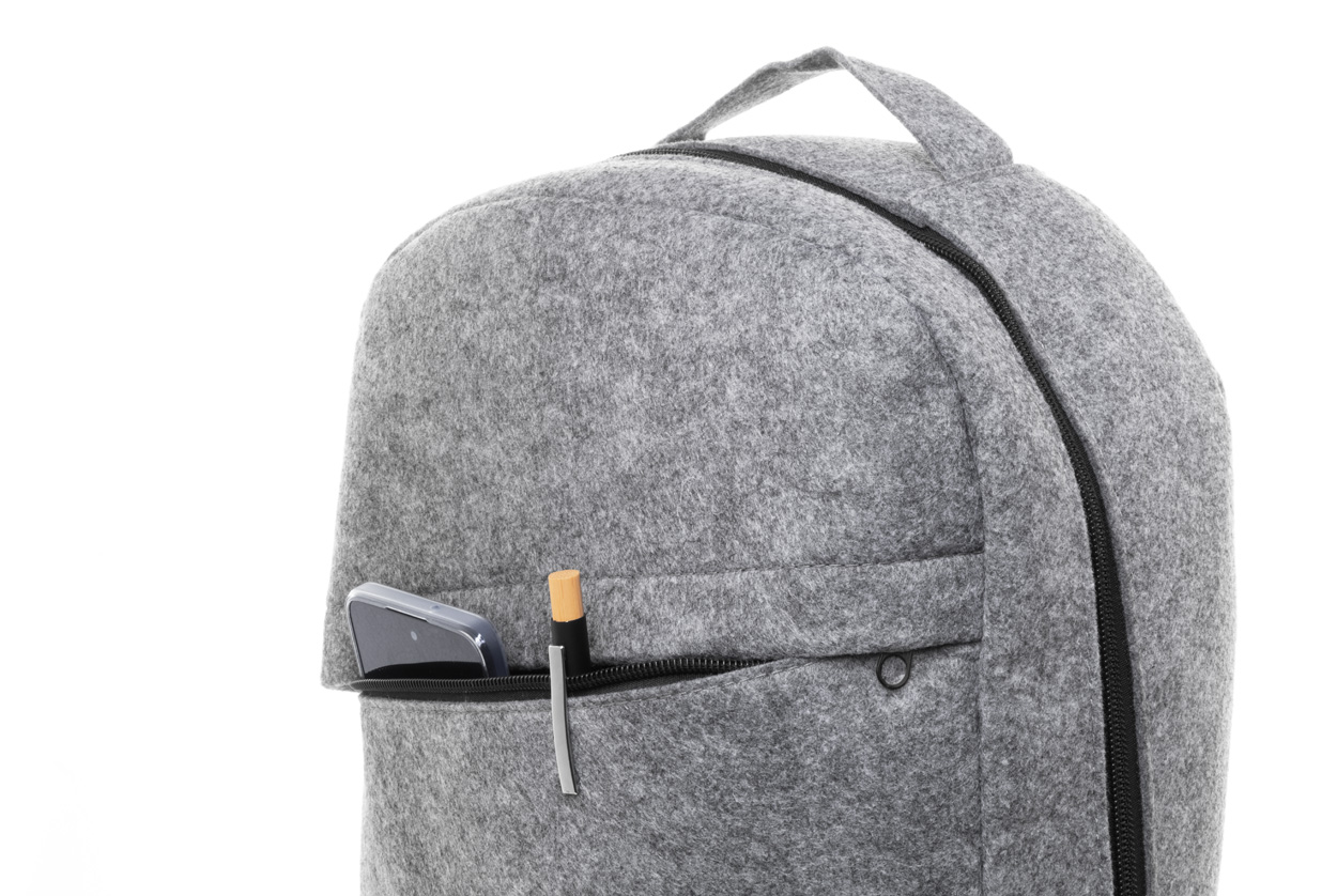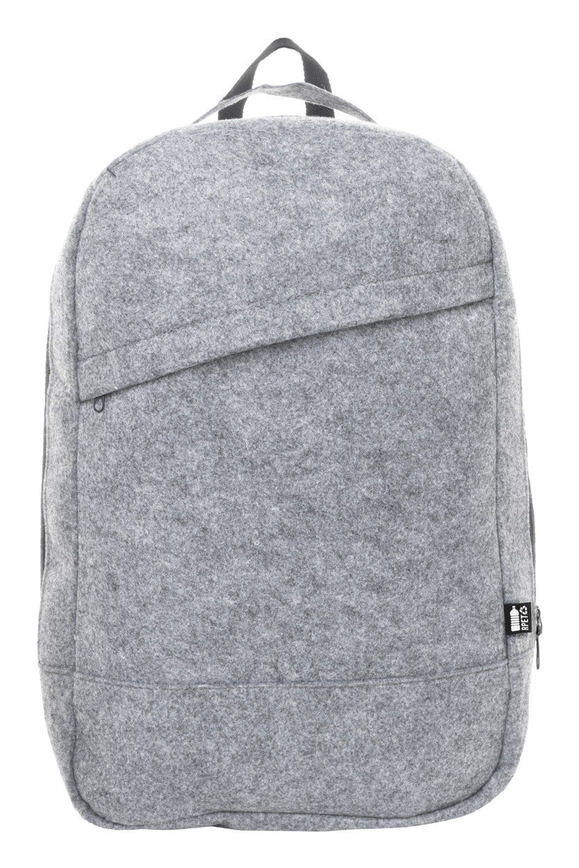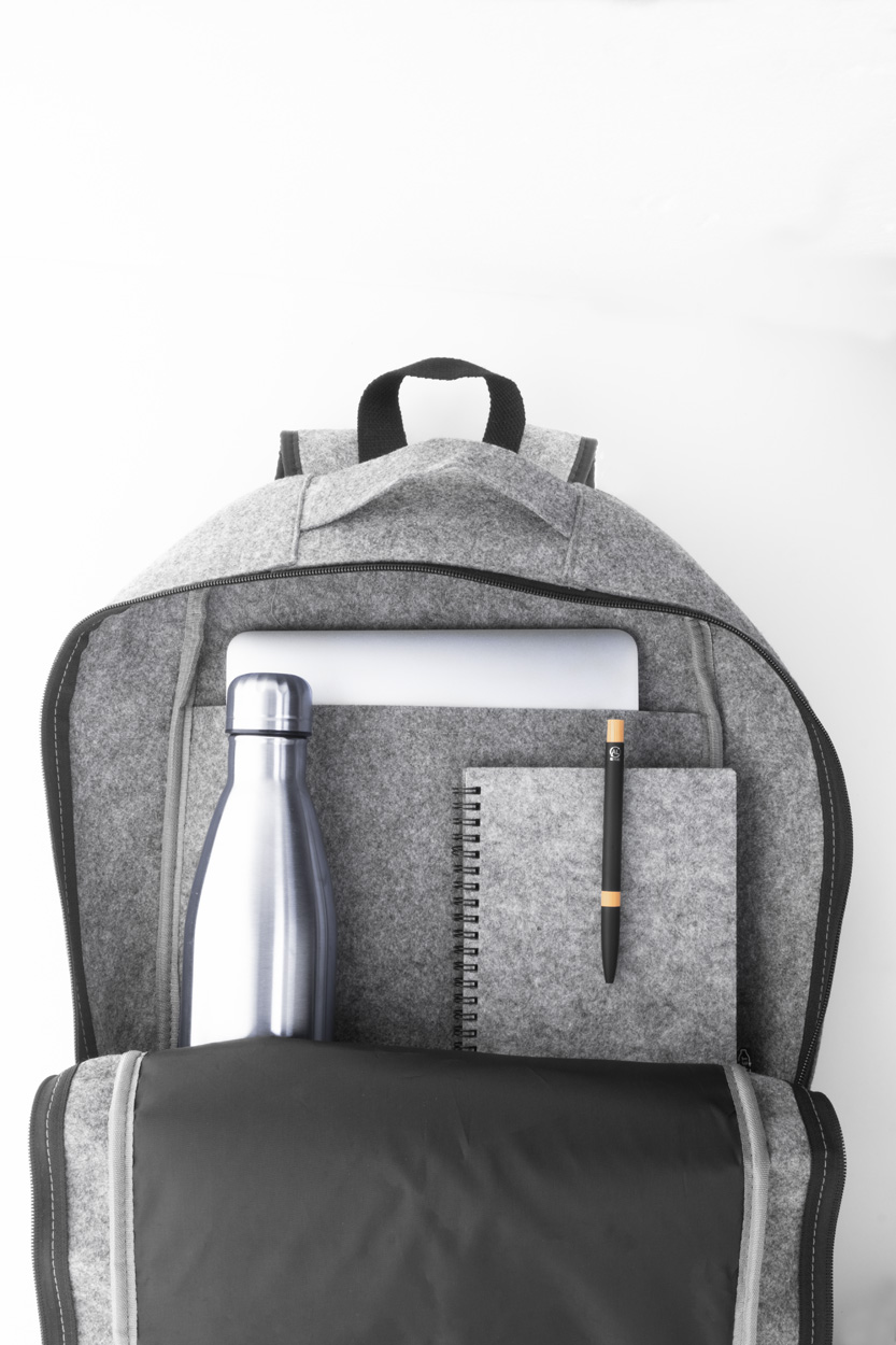 Batoh z RPET plsti s hlavním prostorem na zip a přední kapsou. S přihrádkou na notebook (15"), popruhem na vozík a polstrovanými ramenními popruhy. S výrazným štítkem RPET.