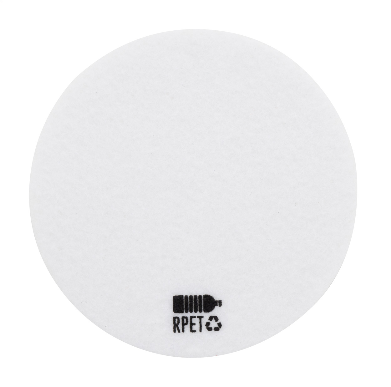 Kulatý plstěný podtácek RPET. S výrazným znakem RPET.