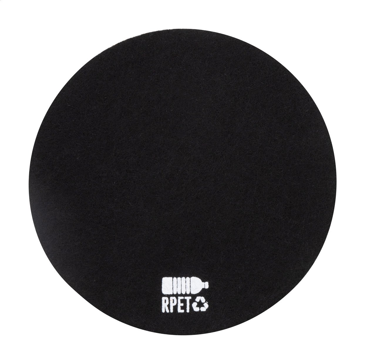 Kulatý plstěný podtácek RPET. S výrazným znakem RPET.