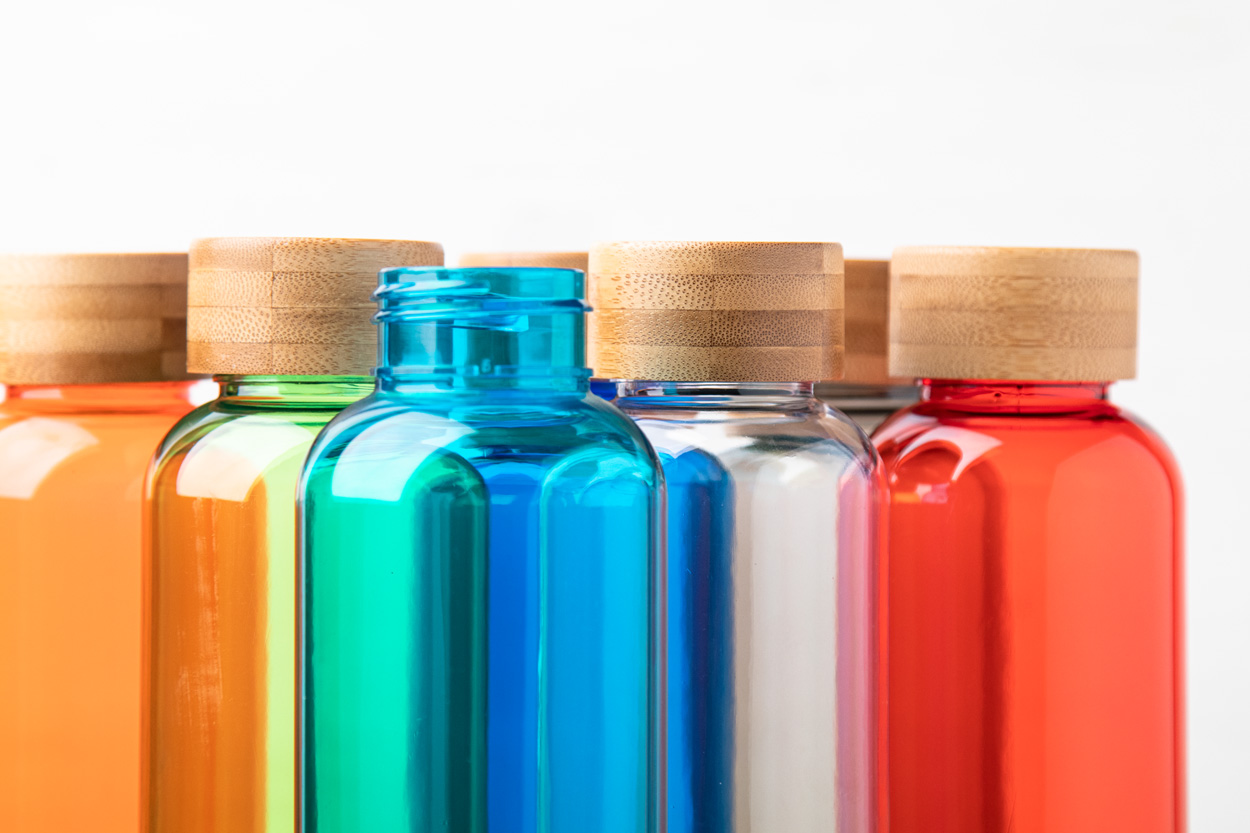 Sportovní láhev z RPET plastu bez BPA s bambusovým víčkem, 500 ml. Nevhodné pro sycené nápoje.
