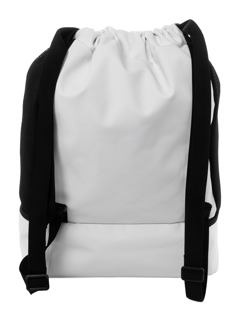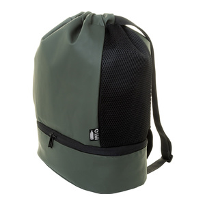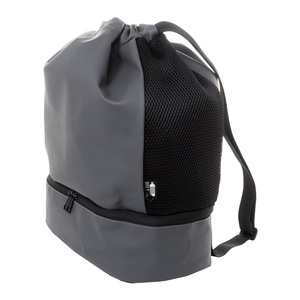Prémiový vak se stahovací šňůrkou z RPET s přihrádkou na boty na zip, bočními vložkami ze síťoviny a širokými popruhy. Polyester 600D RPET potažený PU s výrazným štítkem RPET.