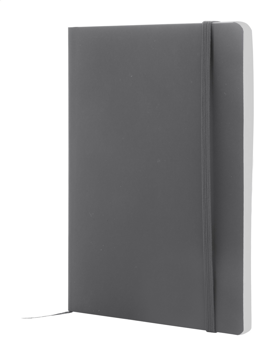 Blok A5 z recyklované PU kůže s měkkou vazbou s 80 linkovanými listy z recyklovaného papíru. Se záložkou v odpovídající barvě a gumičkou.