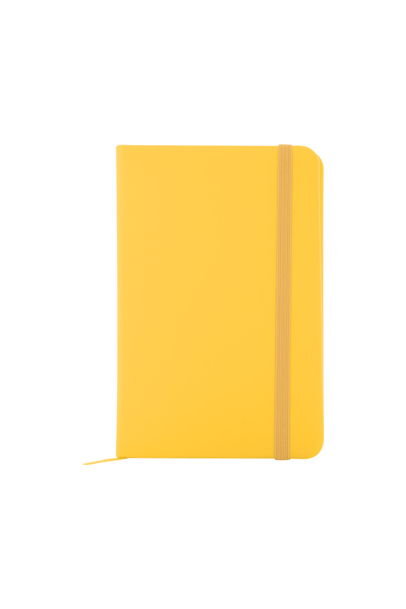 Blok potažený recyklovanou PU kůží se 100 linkovanými listy z recyklovaného papíru. Se záložkou v odpovídající barvě a gumičkou. Velikost A6.