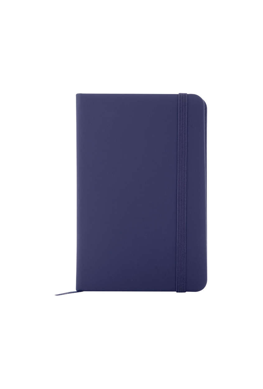 Blok potažený recyklovanou PU kůží se 100 linkovanými listy z recyklovaného papíru. Se záložkou v odpovídající barvě a gumičkou. Velikost A6.