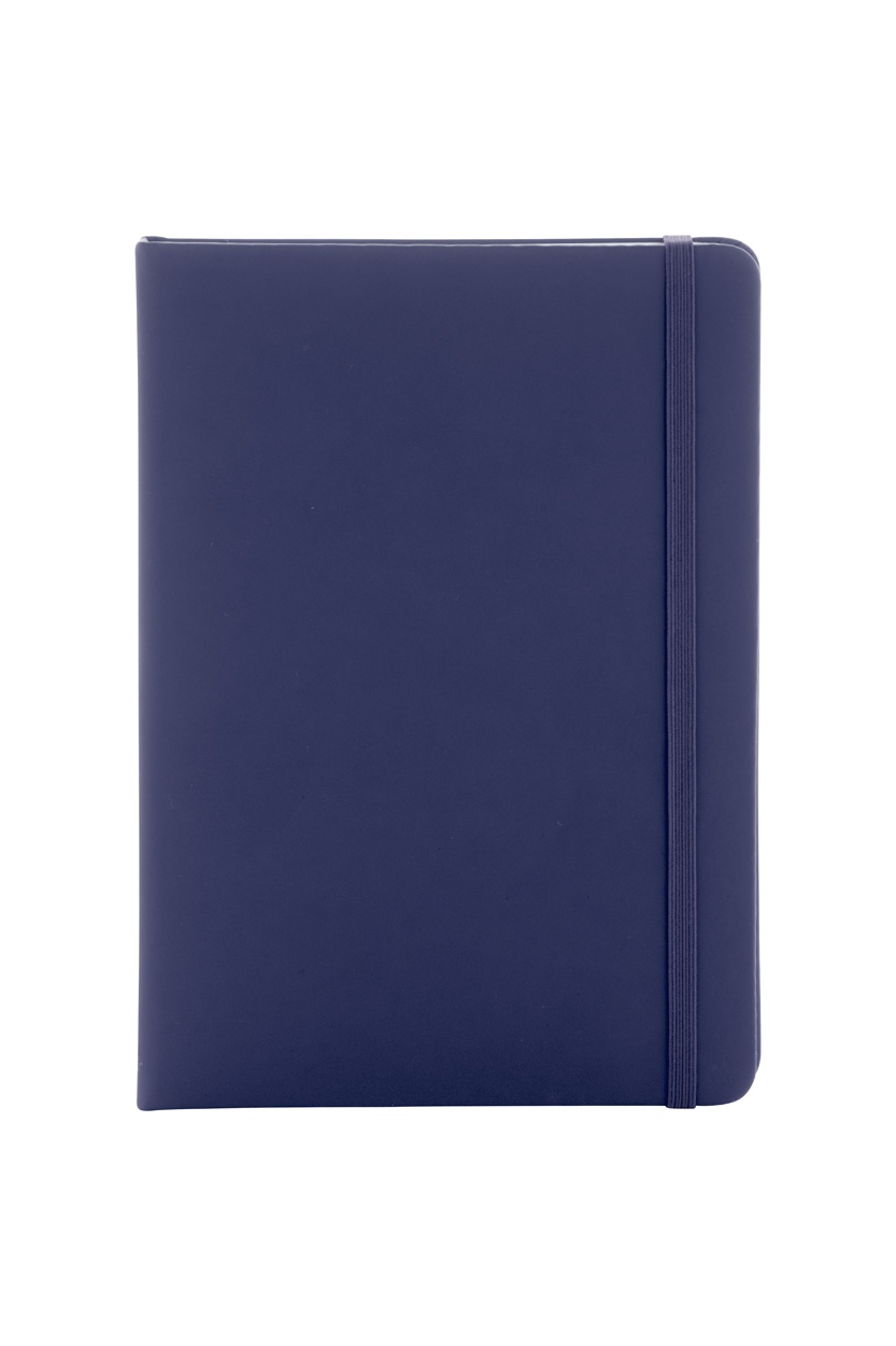 Blok potažený recyklovanou PU kůží se 100 linkovanými listy z recyklovaného papíru. Se záložkou v odpovídající barvě a gumičkou. Velikost A5.