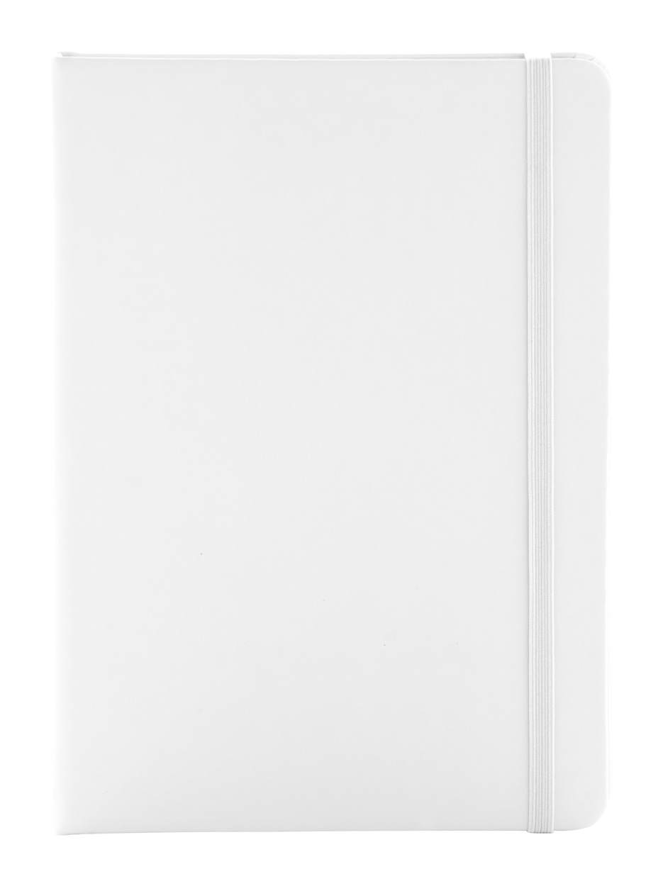 Blok A5 z recyklované PU kůže se 100 čistými listy z recyklovaného papíru. Se záložkou v odpovídající barvě a gumičkou.