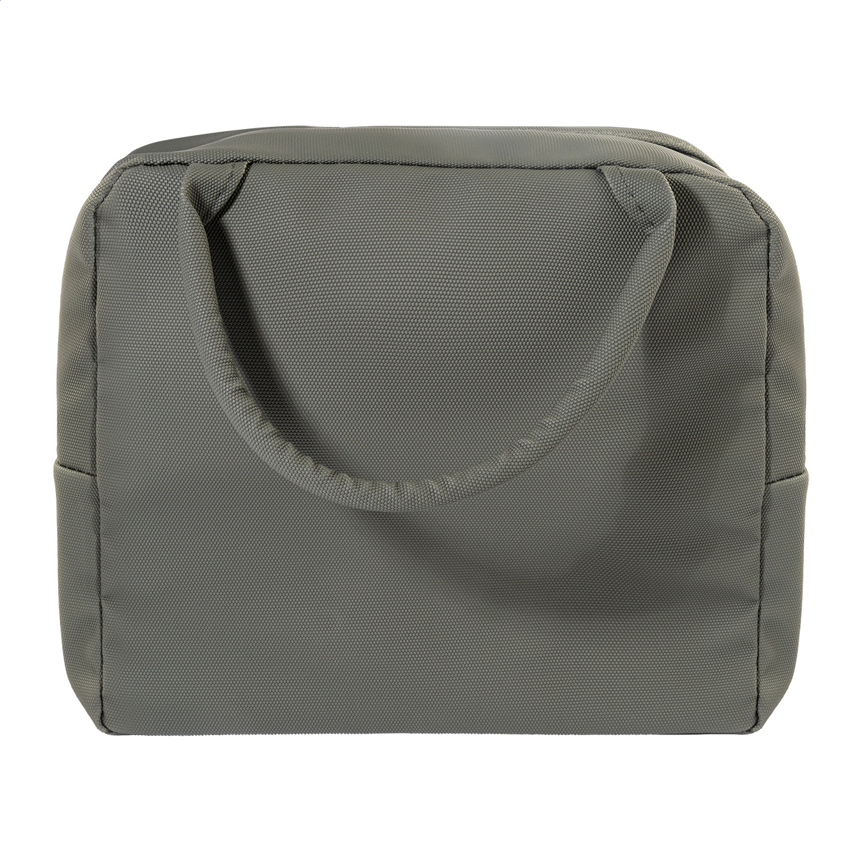 Chladicí taška na zip z měkké recyklované PU kůže s přední kapsou a hliníkovým polstrováním. S charakteristickým štítkem z recyklované PU kůže.