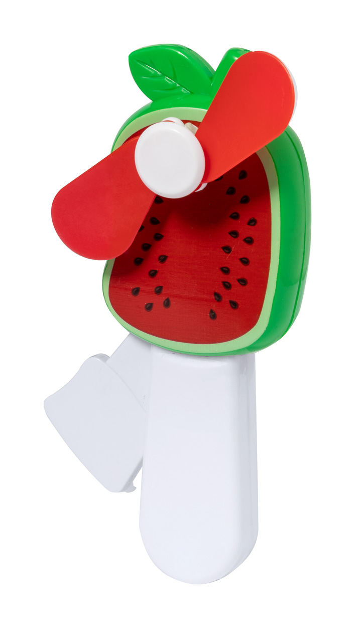Ruční větráček s ozdobou ve tvaru ovoce, ABS plast.