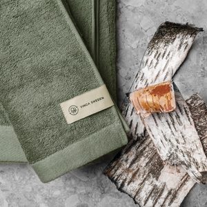 Sada ručníků ze 68 % z bavlny a ze 32 % z materiálu Tencel. Jedná se o přírodní vlákno získané z certifikovaných lesů. Vyrábí se energeticky a chemicky nejúčinnějším procesem, který máme v současné době k dispozici. Tato směs vytváří chladivou, měkkou a odolnou tkaninu, která je pevná na dotek a díky směsi Tencel má vynikající savost. Použitá bavlna má certifikát BCI, což je iniciativa, která pomáhá pěstitelům bavlny přejít od konvenčního k udržitelnějšímu způsobu hospodaření. Vyrábí se v zemitých tónech v různých velikostech.