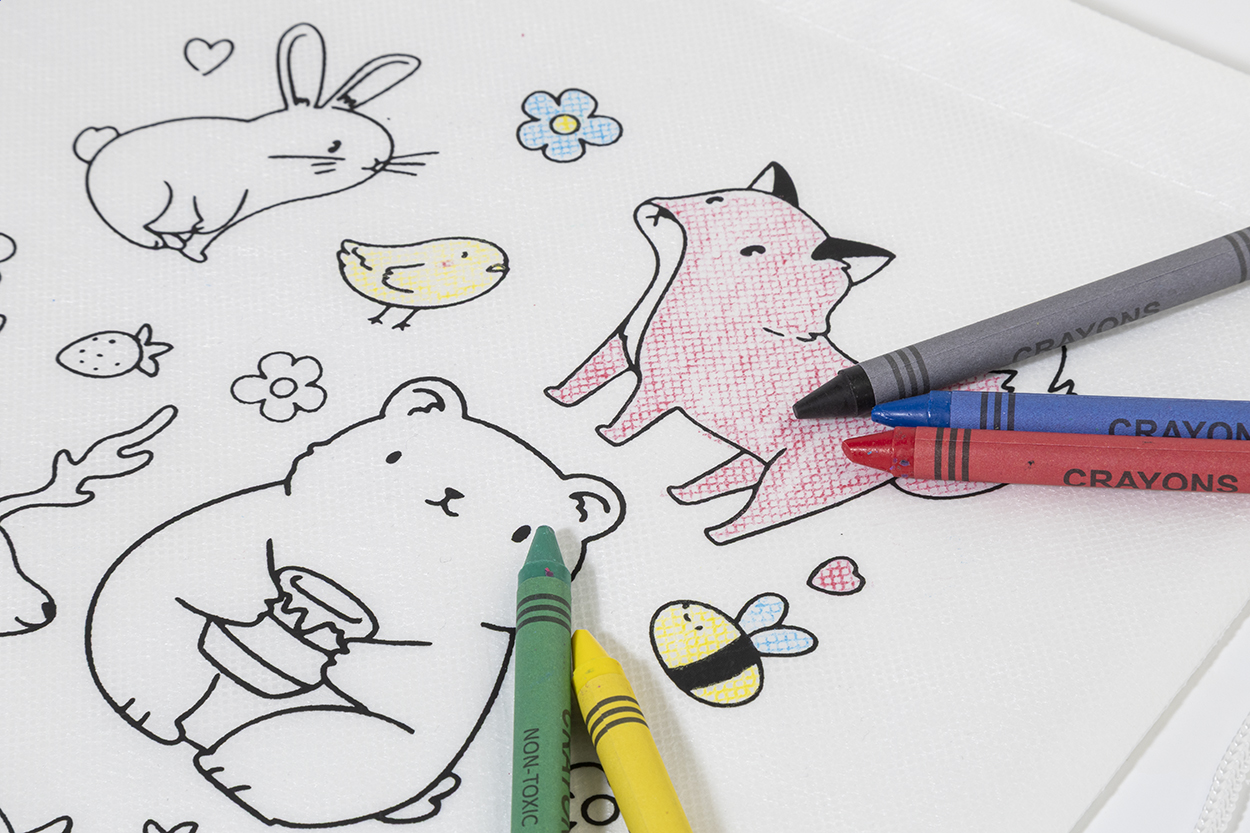 Sáček na šňůrky RPET na vybarvování, zvířata