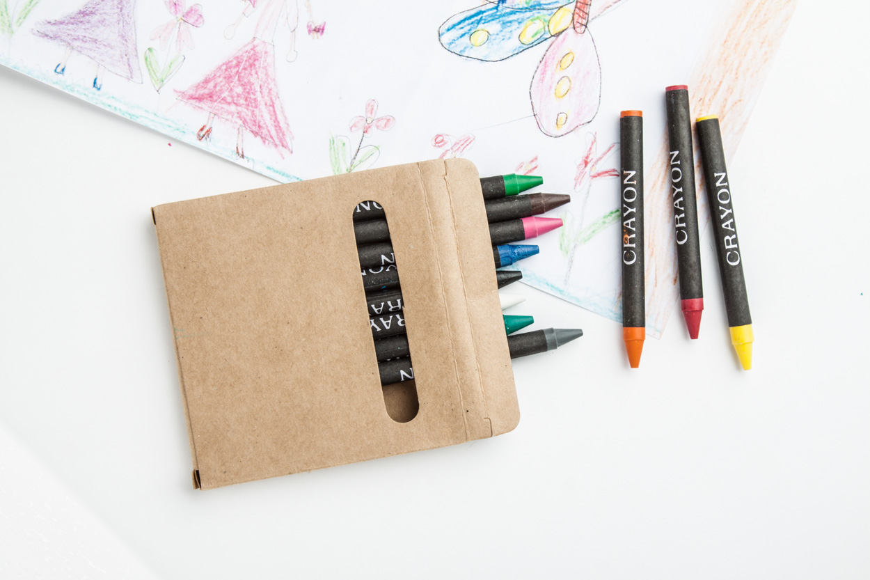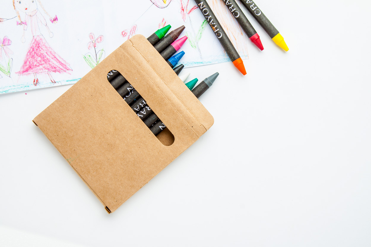 Voskovky obalené černým papírem v papírové krabičce.