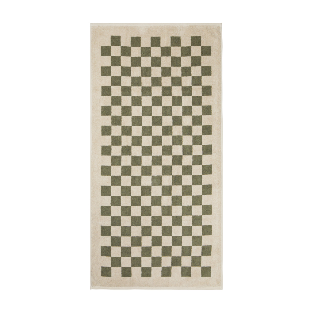 Sada ručníků se vzorem šachnovnice a plyšovou gramáží 500 g/m2 nabízejí dobrou savost a měkkost. Sada obsahuje dva ručníky o rozměru 135x165cm a dva menší praktické ručníky o rozměru 65x40cm. Každá sada je pečlivě zabalena v obalu s certifikací FSC®. Standard Organic Content Standard (OCS) se zaměřuje na organicky vypěstovaný materiál a sleduje jej od zdroje až po konečný produkt. Tento produkt obsahuje 99 % organické bavlny s certifikací OCS.