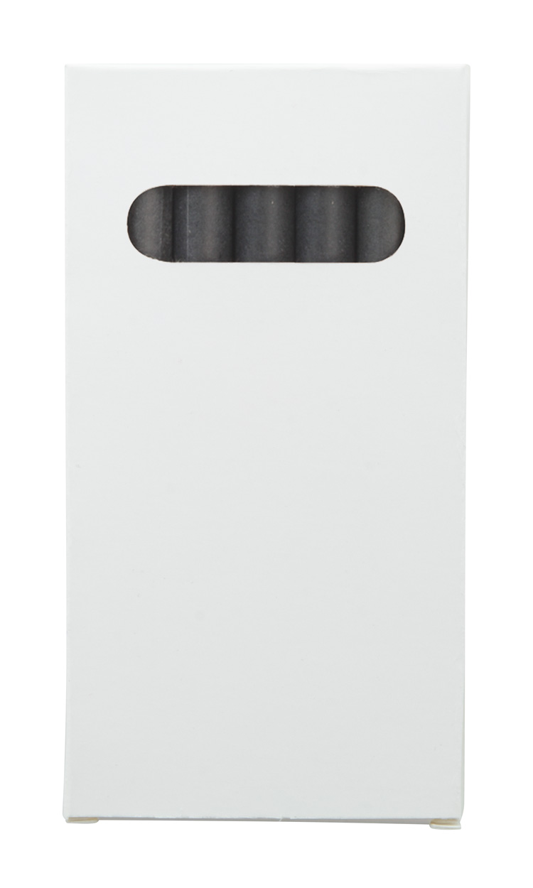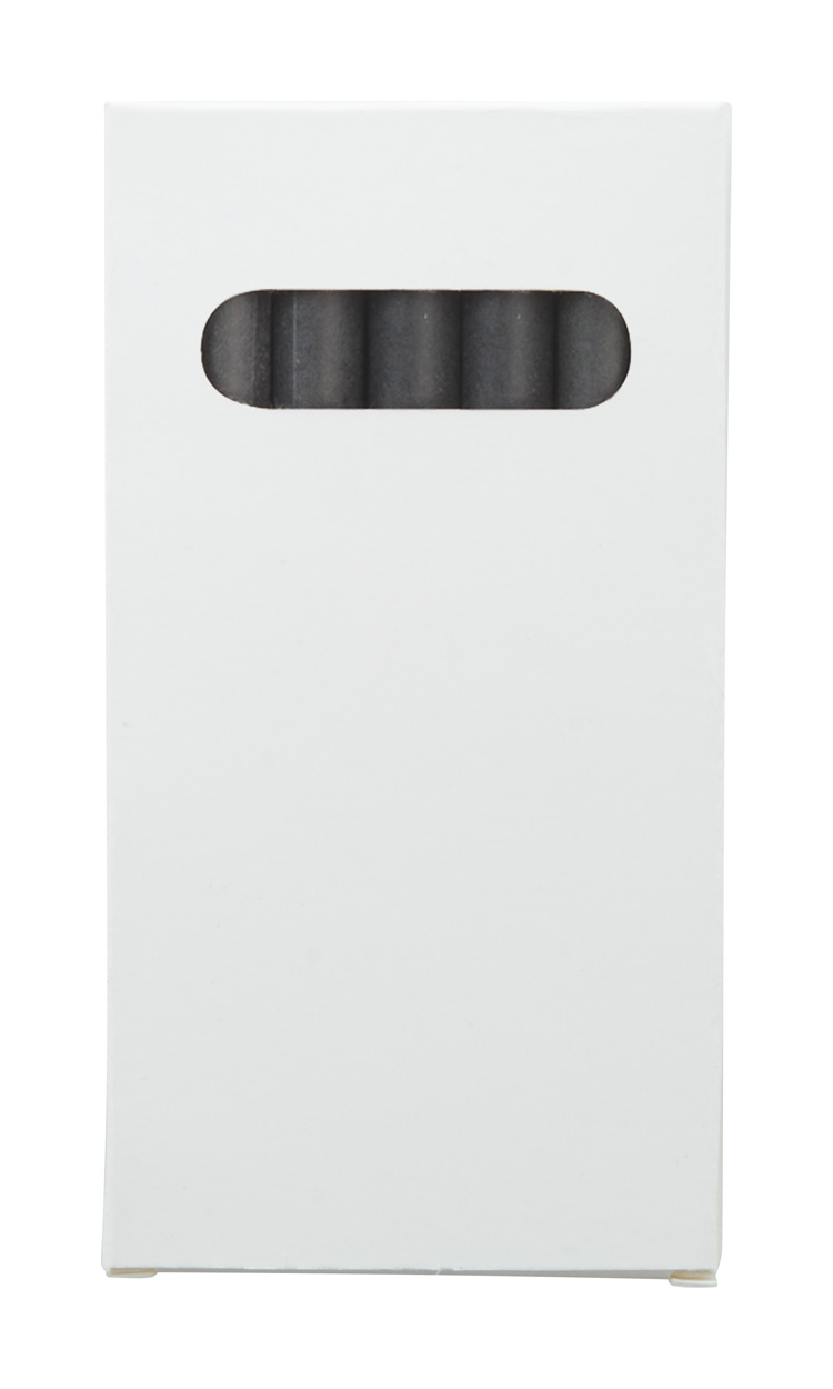 Sada 6 ks voskovek obalené černým papírem v papírové krabičce na zakázku. Cena zahrnuje digitální tisk, nezahrnuje tiskovou přípravu. Min. mn.: 100 ks.