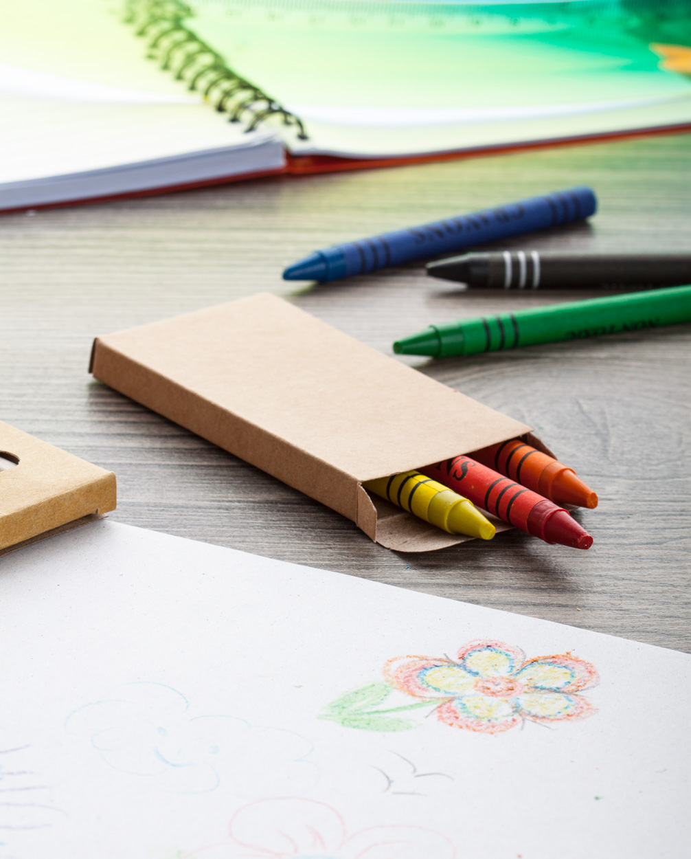 Voskovky obalené černým papírem v papírové krabičce.