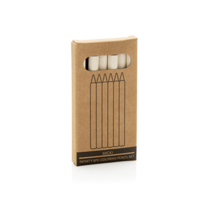 Sada 6 pastelek Micki GRS obsahuje šest pastelek v barvách červená, žlutá, modrá, zelená, oranžová a černá, každá o délce 9 cm. Pastelky jsou vyrobeny z 90 % recyklovaných materiálů a mají hladký grafitový hrot pro snadné kreslení. Sada je dodávána v opakovaně použitelné dárkové krabičce a je zabalena v FSC® kraftovém papíru. Na rozdíl od tradičních pastelek, které vydrží asi 200 metrů, tyto Tree-Free pastelky píší až 20 000 metrů. Vytvářejí hladkou linku a lze je snadno vygumovat. Tyto pastelky jsou navrženy tak, aby vydržely déle - předčí až 100 běžných pastelek!