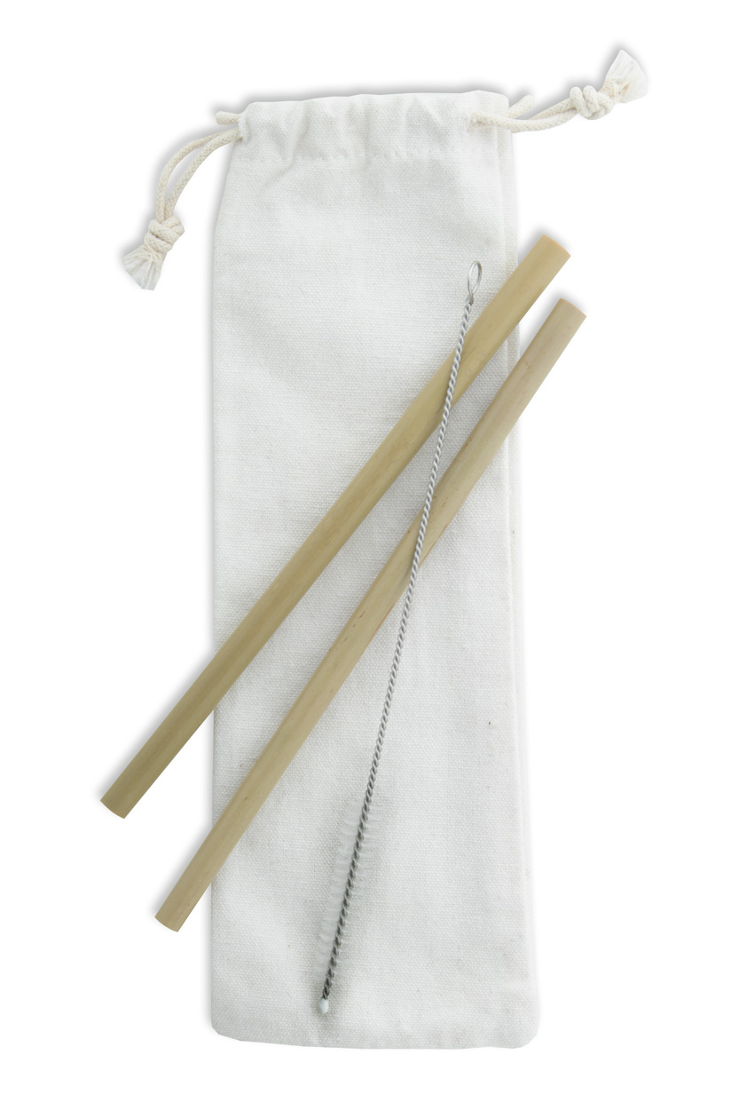 Sada 2 opakovaně použitelných přírodních bambusových brček a čistícího kartáčku v bavlněném pouzdře. Průměr a povrch brček se může lišit.