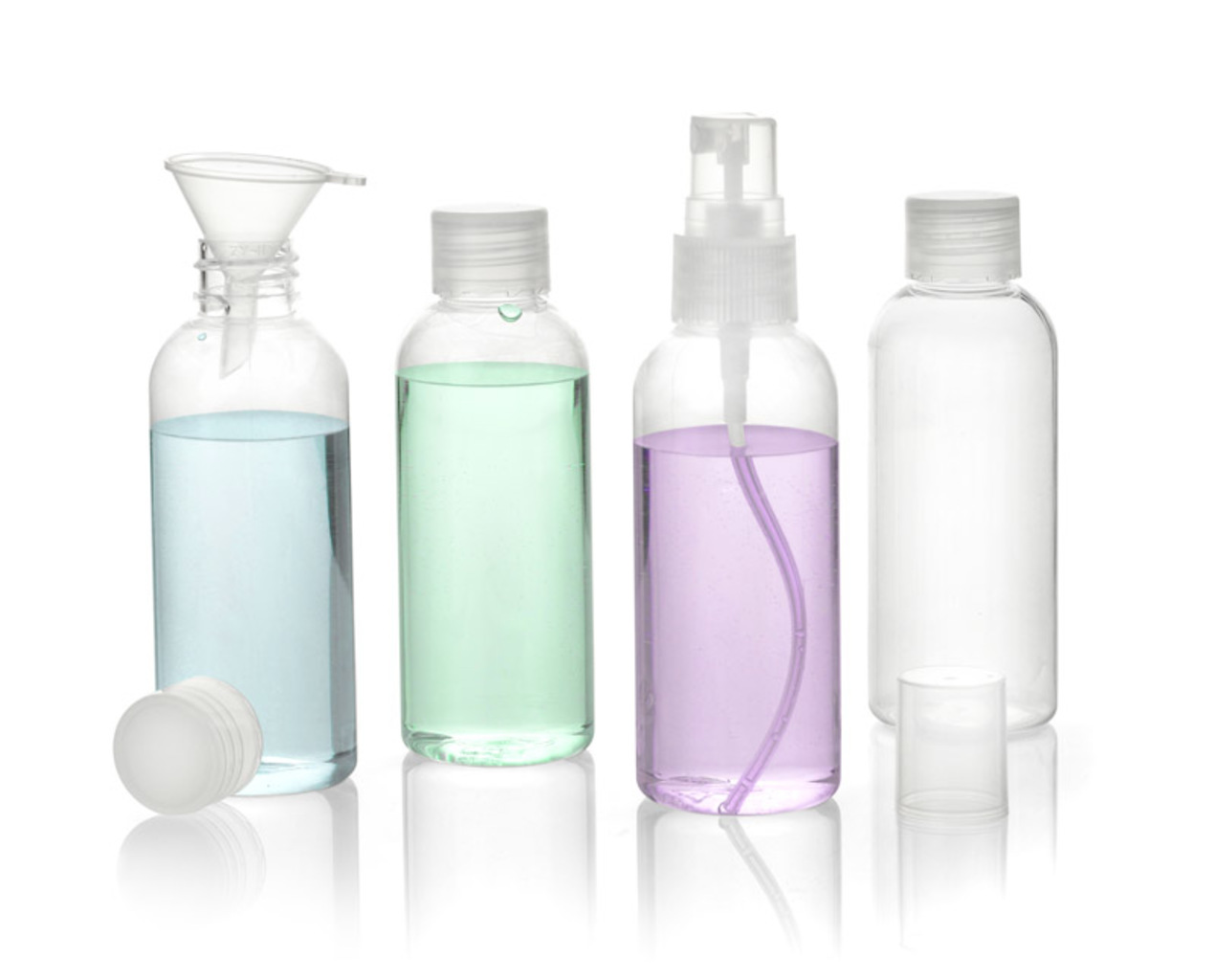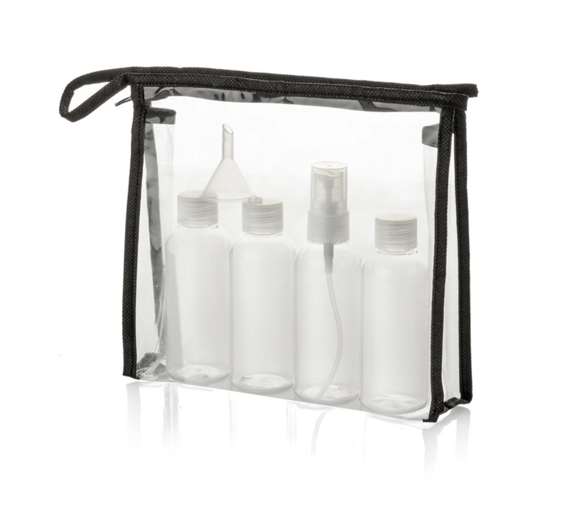 Sada malých nádob je perfektním dárkem pro cestovatele. Můžete snadno nalít tam své oblíbené kosmetiky a vzít je s sebou na cestu. Nádoby lze vzít na palubu letadla v osobním zavazadle. Sada obsahuje 4 lahve o objemu 80 ml, včetně jedné se stříkacím zařízením a dalším hrníčkem na nalévání kosmetiky.