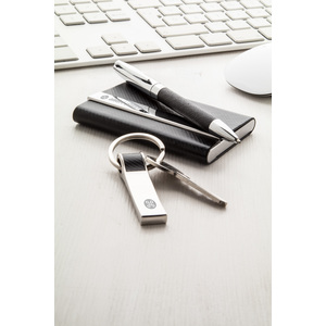 Elegantní set s kuličkovým perem s černou náplní, vizitkářem a klíčenkou. Materiál kov/PU kůže. Značkový produkt André Philippe.