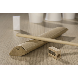 Ekologický přátelský set se skládá z dřevěné tužky, ořezávátka a gumy. Vše je zabaleno v kartonové krabici. Logo může být tisknuto nebo vyryto.