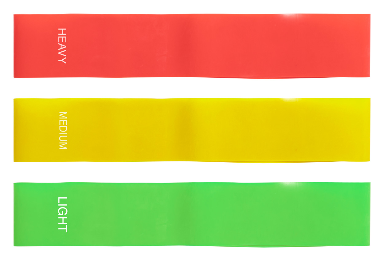Sada 3 ks gum na cvičení s různým odporem (lehký, střední, těžký) z TPE gumy. S obalem na přenášení se šňůrkou.