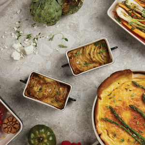 Sada 2 ks malých pečících misek vyrobených z odolné kameniny. Ideální pro přípravu jedné porce jídla nebo menších příloh. Kamenina zajišťuje rovnoměrnou distribuci tepla a je vhodná pro vysoké teploty při pečení v troubě. Lesklá vnitřní strana zabezpečuje snadné čištění.